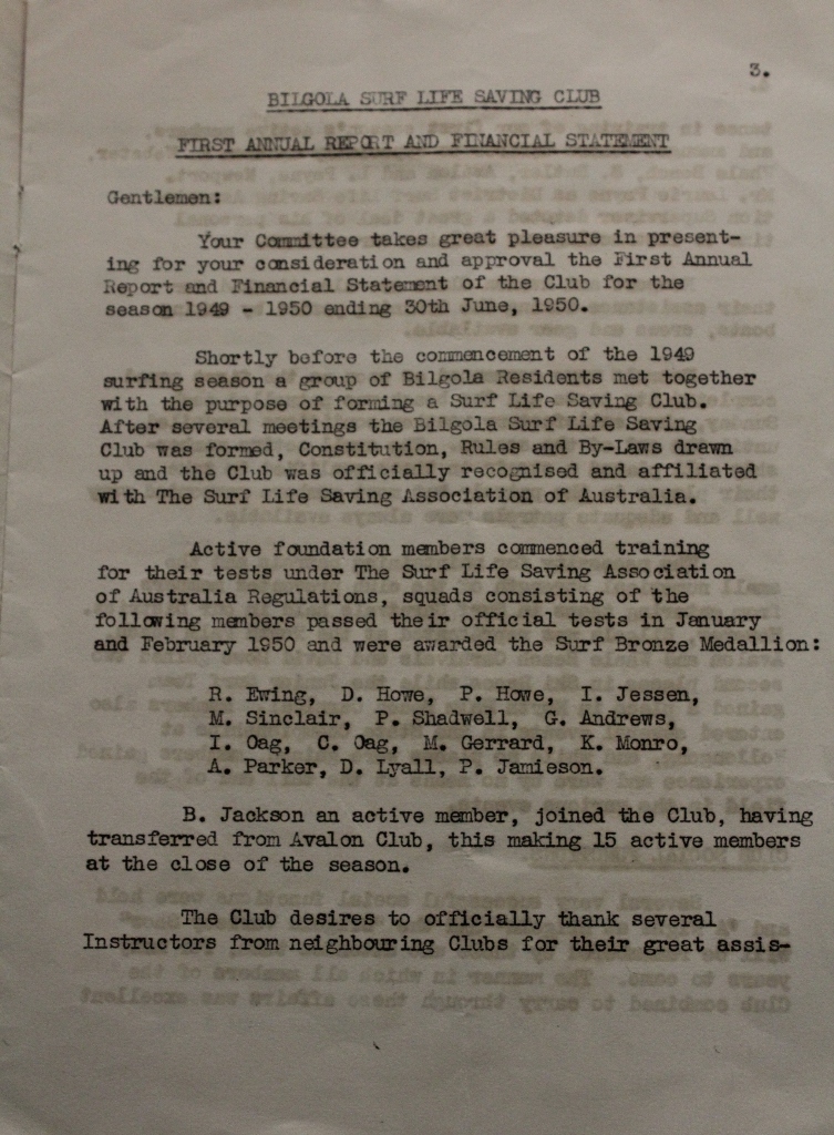 In 1949, due to my friends at Shore, I ended up at Bilgola Beach for the school holidays at Christmas. In December we were on the beach and were approached by a couple of locals; ‘do you want to join a surf club?’.