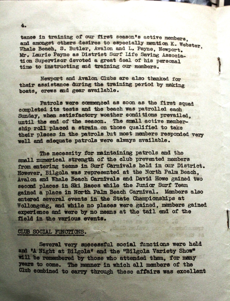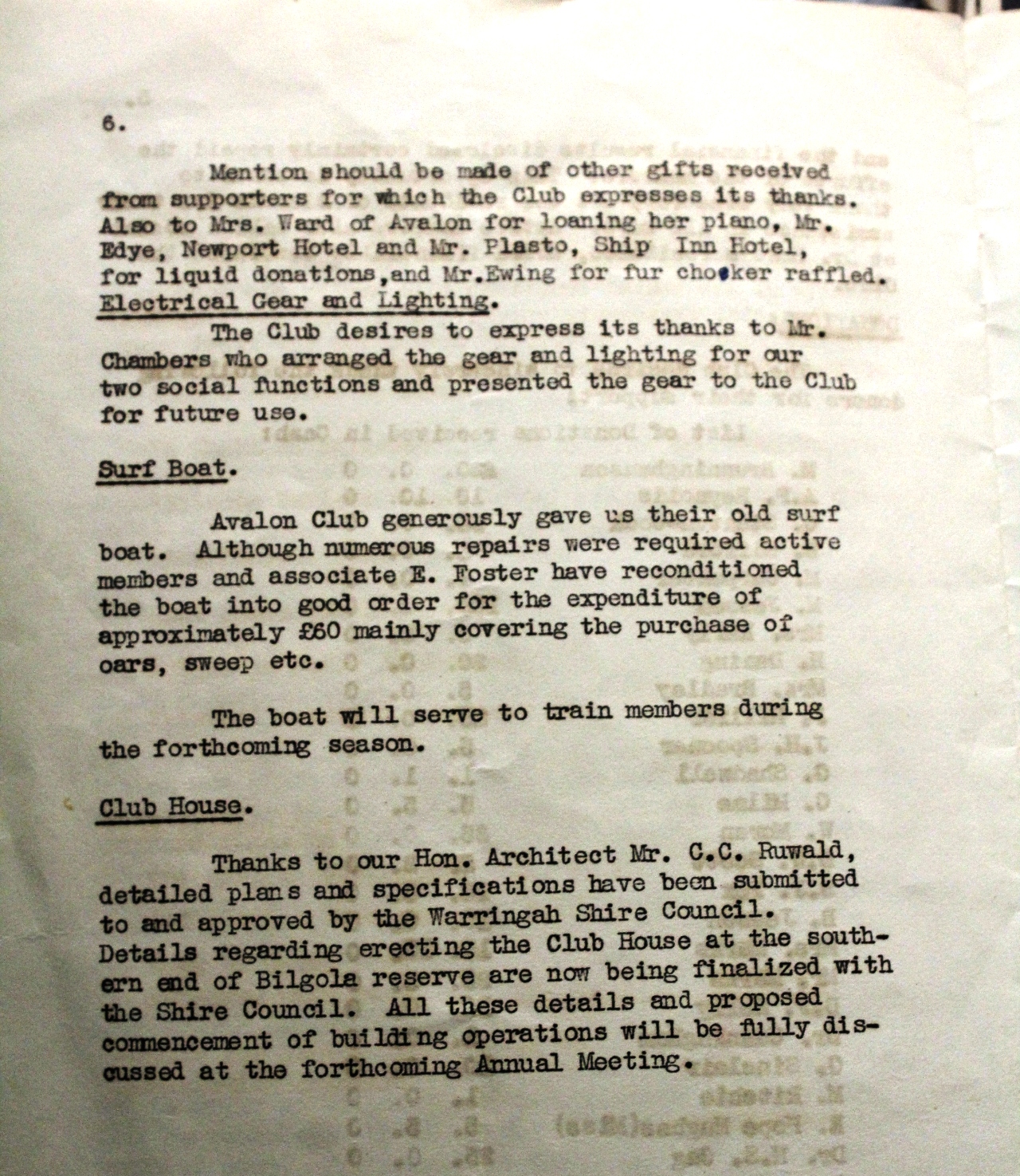 In 1952 the lady who owned Bilgola House offered that premises and its site, plus the land all the way back to the Serpentine, for 18 thousand pounds. The committee of then decided ‘why should we spend all the money we’ve made, plus borrow more, when the council is going to give us some land over on the reserve and we can build a clubhouse there.’