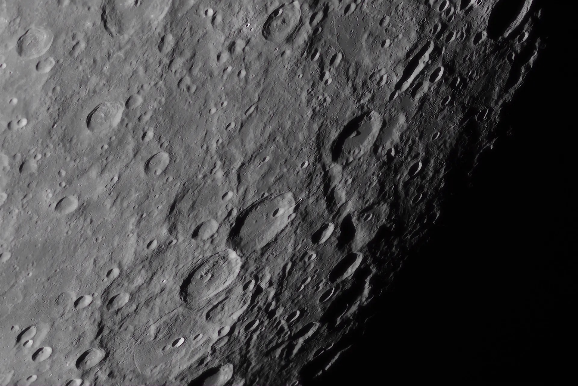 The valley on the moon, Vallis Rheita, runs diagonally in the centre of this image, and above it is the crater Rheita. ‘The details in shadow line, mountain peak and craters within the 71-kilometre wide Rheita crater, is reminiscent of Apollo orbiter images.’ Photograph: Niall MacNeill/David Malin awards