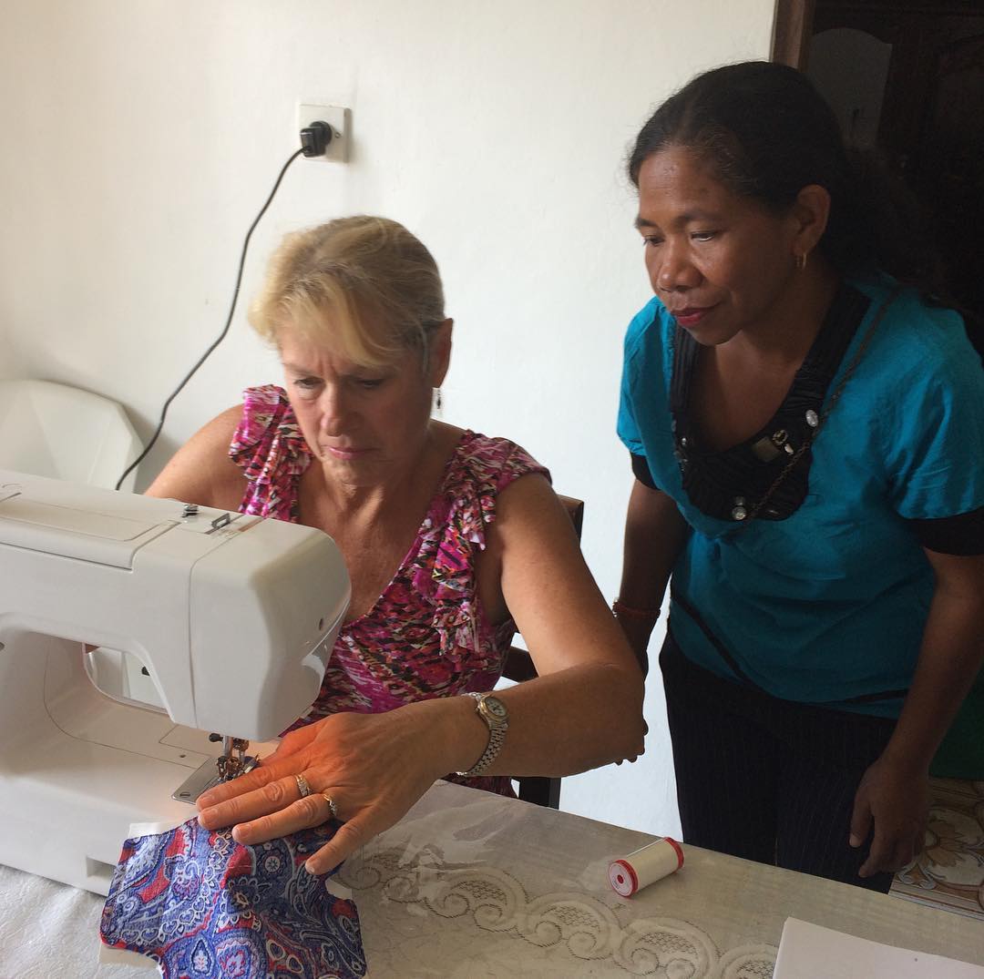 There has been much interest in the village in the production aspects of the Days for Girls shields and liners. Last October Pittwater resident, Rae Masman, accompanied our team to Soibada to run workshops and train selected locals in sewing the kits. (Interestingly Rae went to primary school with me at St Kevin’s in Dee Why and we reconnected through Rotary last year.)