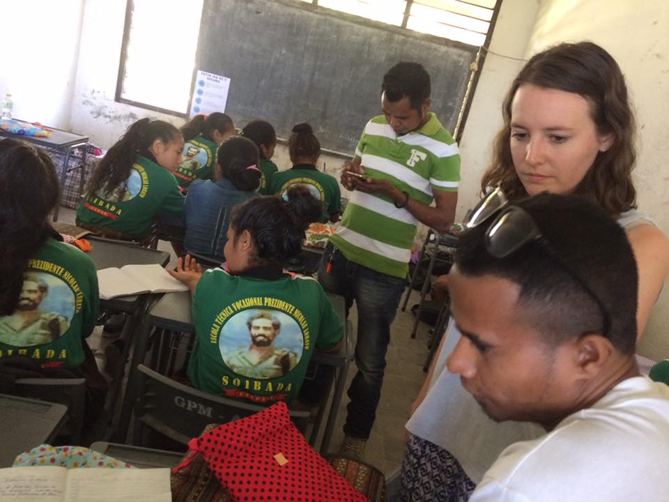 Ex Mater Maria Catholic College student Maya Burton has visited the village a couple of times now. She runs the in depth class room education program. A few weeks ago I spoke of the instruction video that she and other Mater students put together. It is in Tetun, the most common language in Soibada and is shown regularly in the village. Mater’s year 8 student Armelle helped hand out the kits in Nicolau Lobato Senior High School in Soibada last year.