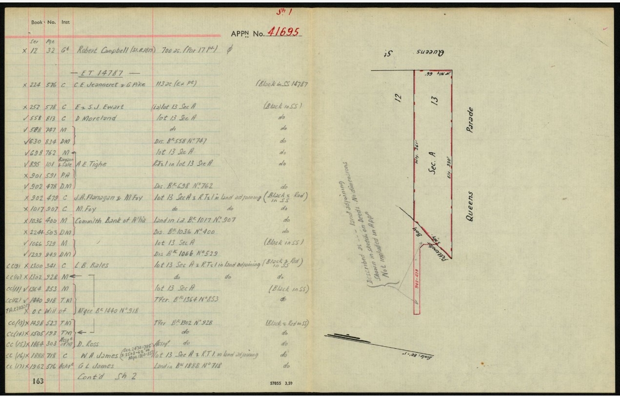 Walter James Dearin acquired an interest in these limited availability blocks three decades later, when most of them had changed hands several times. He was a solicitor who worked as a Proctor.