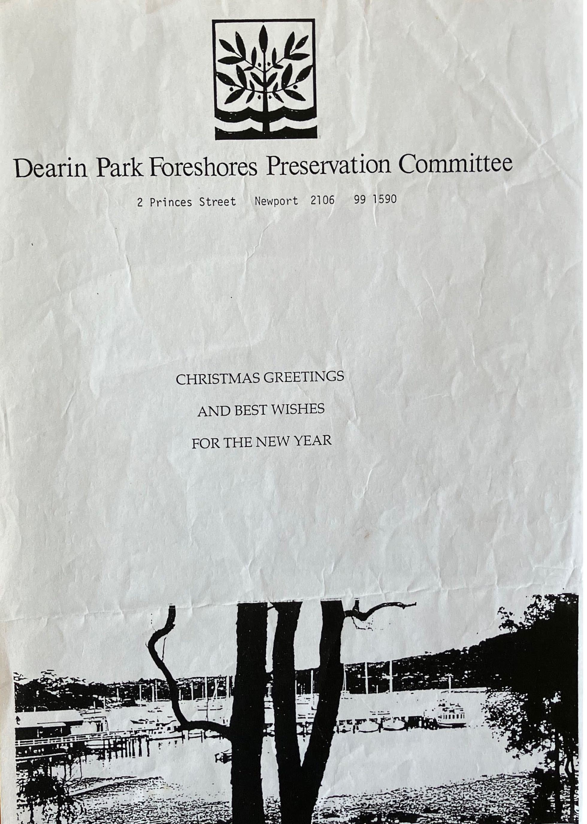 The second instance was approved by the then Warringah Shire Council. The third time the reserve's verges on the estuary were threatened, the formed for that purpose community group, the 'Dearin Park Newport Foreshores Preservation Committee', created a logo which would go on to epitomise the tenets of Pittwater residents so symbolically it would become Pittwater Council's logo.