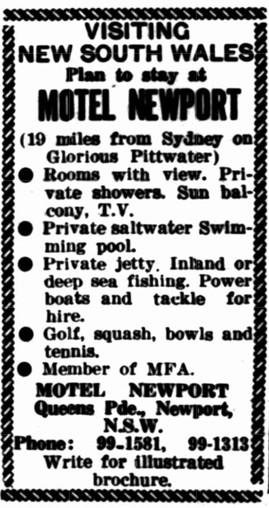 Upon arriving at Newport the Sydney visitors were enabled to spend several hours ashore, picnicking, fishing, gathering flowers, or enjoying a stroll along the cool avenues which branch off in many directions from Hodge's Newport Hotel.THE HAWKESBURY RIVER. (1890, November 11). The Sydney Morning Herald (NSW : 1842 - 1954), p. 5. Retrieved from http://nla.gov.au/nla.news-article13798013