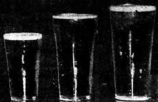 Smaller beer glasses have been introduced in Sydney hotels, following an increase in the excise duty. The old and the new glasses are shown in this picture, taken to-day in a city hotel. – Sydney Sun September 19 1939.