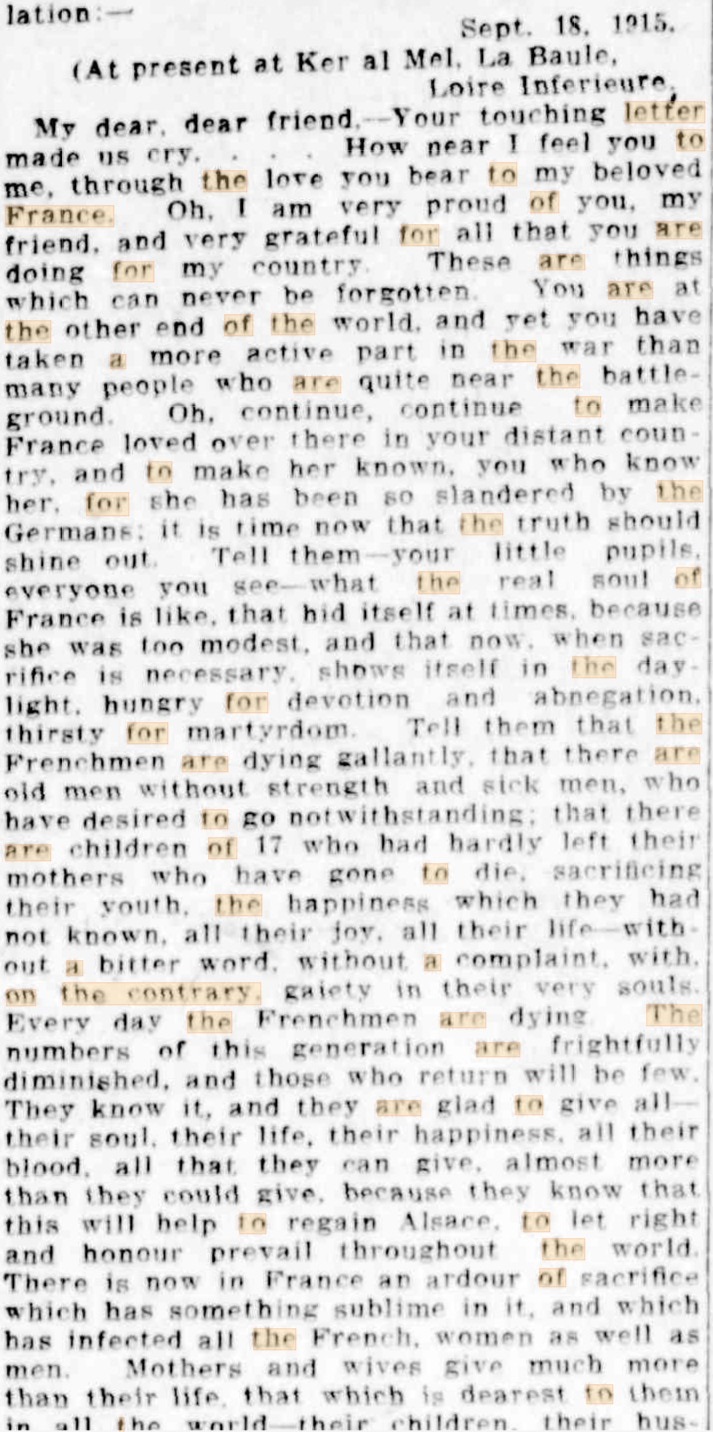 In full at - MAKE FRANCE KNOWN. (1915, December 6). The Sydney Morning Herald (NSW : 1842 - 1954), p. 7. Retrieved from http://nla.gov.au/nla.news-article15629382