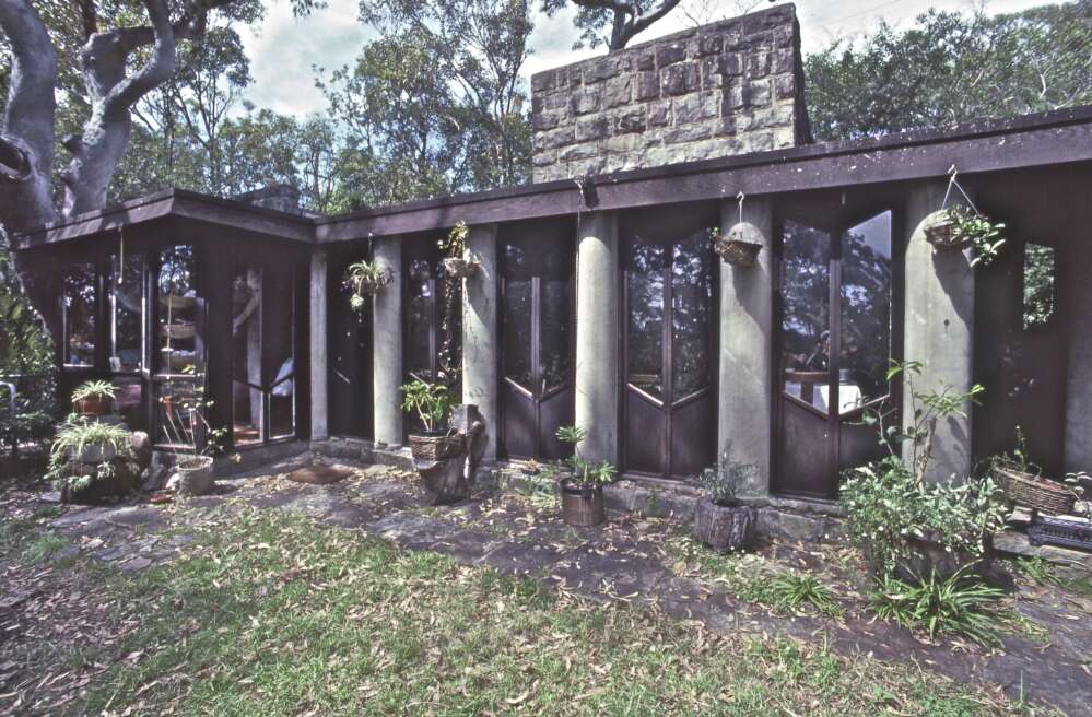 The home is a holiday cottage constructed in 1934 on a site that is steeply sloping, featuring tall stands of eucalyptus and angophoras. The house clearly shows Griffins ideal of integrating house with site. The construction is of squared stone blocks, timber framing, with sloping roofs covered with bituminised felt. Accommodation originally comprised a central living area, 2 bedrooms, a kitchen and bathroom, with a garage on a higher level. In the early 1960s architect Sydney Archer sympathetically extended the north - east corner to enlarge the sleeping accommodation.