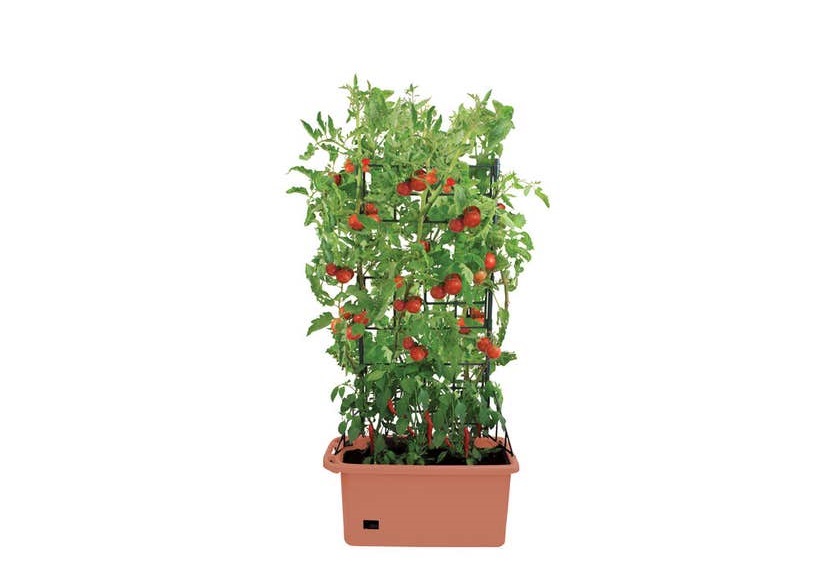Easy to assemble. Includes trellis, handle & wheels. Self watering insert. Perfect for tomatoes or vine vegetables. H1350 x W750 x D350. Soil and plants not included.