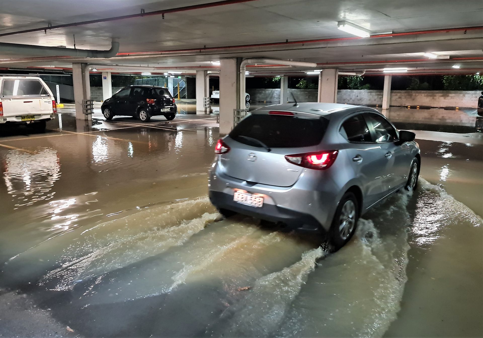 Flooded carpark at Pittwater RSL Club carpark, March 28, 2022