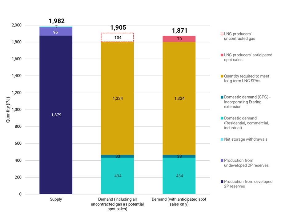 Source: ACCC analysis of data obtained from gas producers in July and October 2024 and of the domestic demand forecast (Step Change scenario and coal retirement delay sensitivity) from AEMO's 2024 GSOO.