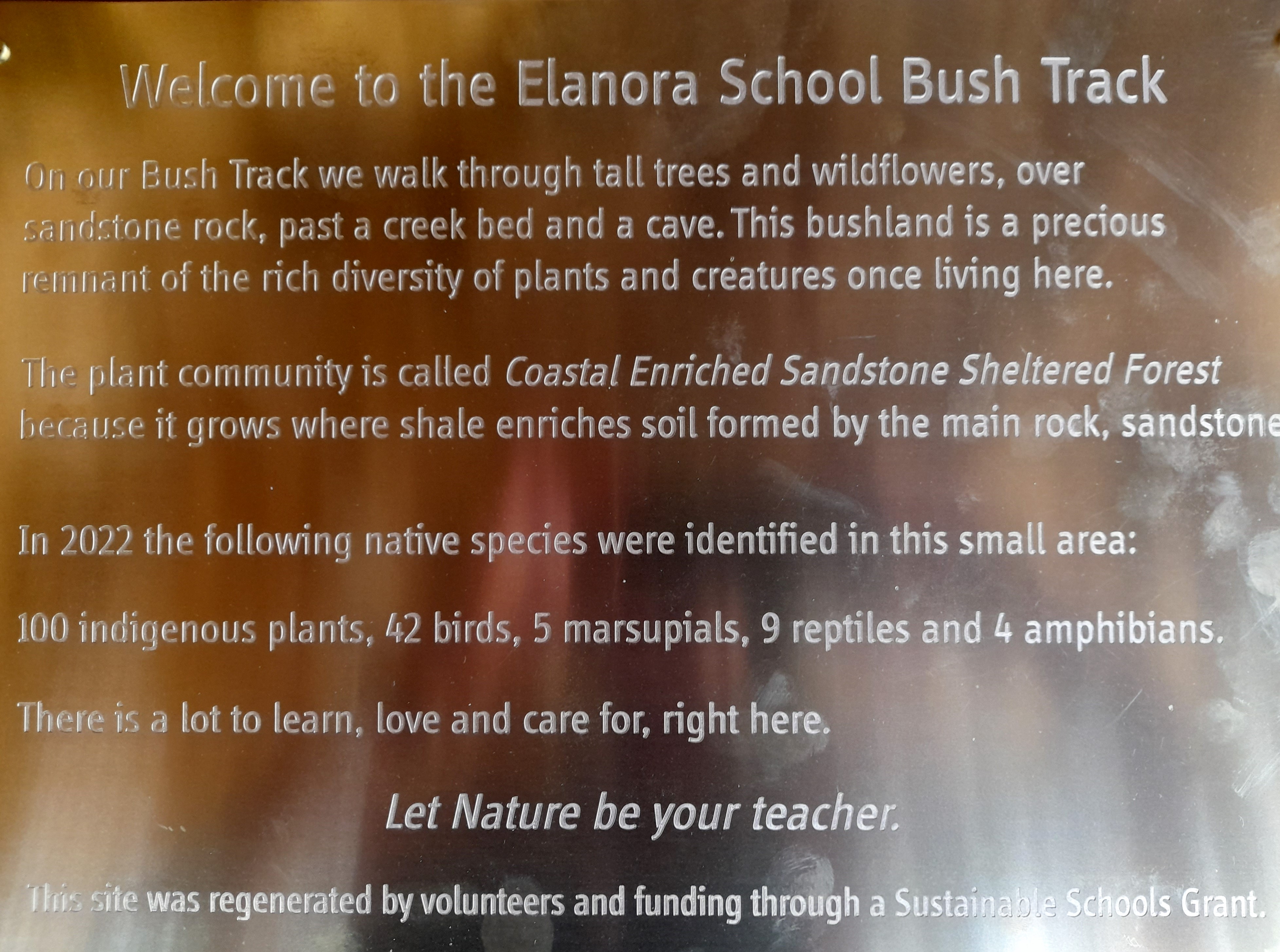 Administration, executive staff, including the support of previous Principal, Leesa Martin and current principal Lisa Phillips, the P&C and generous help from parents have been vital. Northern Beaches Council provided tubestock for parents to plant in the adjacent road reserve, further enhancing the area. A parent also recently installed the attractive wooden signs and brass plaque which help the children appreciate this special path to school.