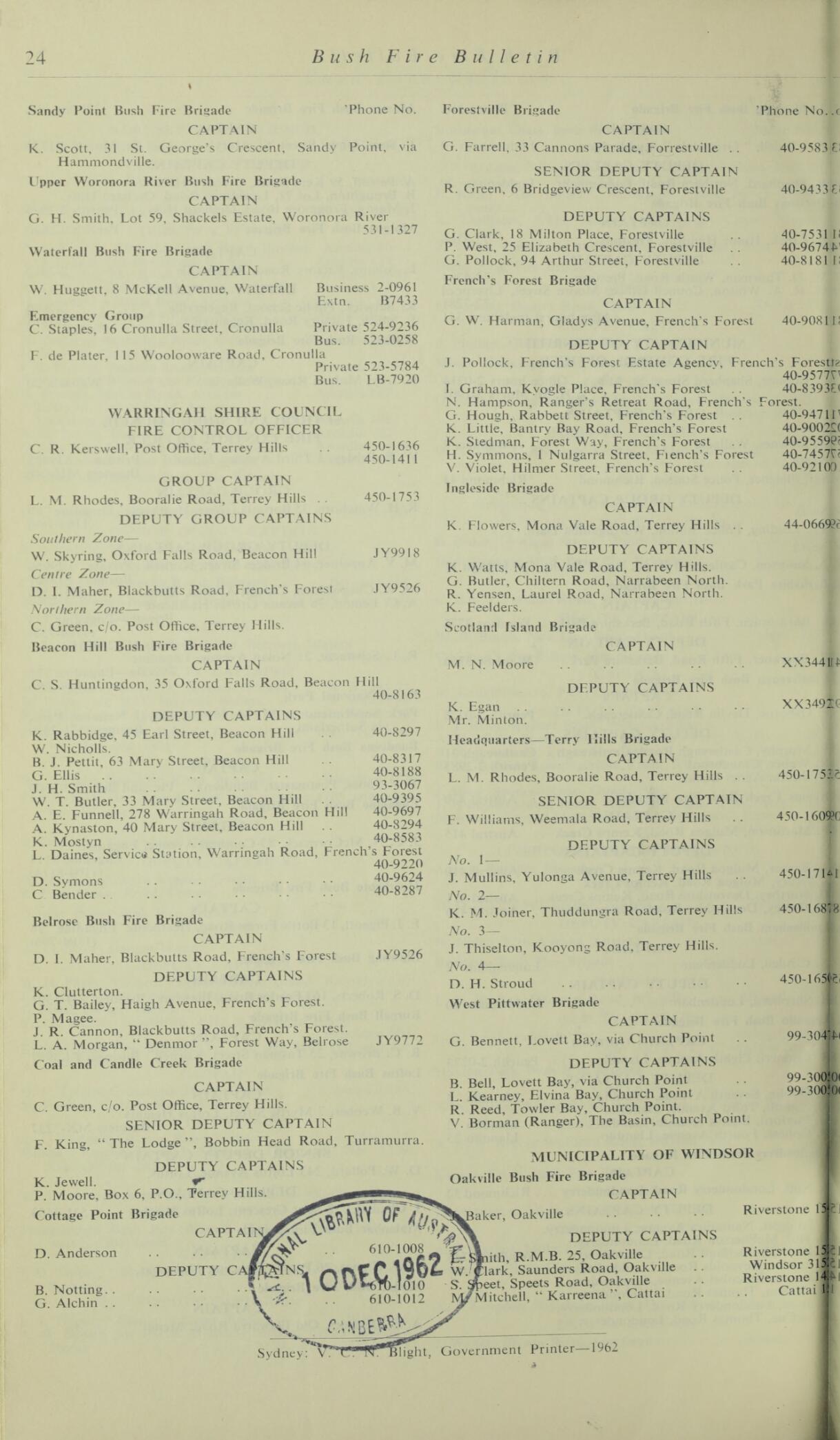 New South Wales. Bush Fire Committee & Bush Fire Council of New South Wales. (Spring 1962). Bush fire bulletin Retrieved from http://nla.gov.au/nla.obj-287476166