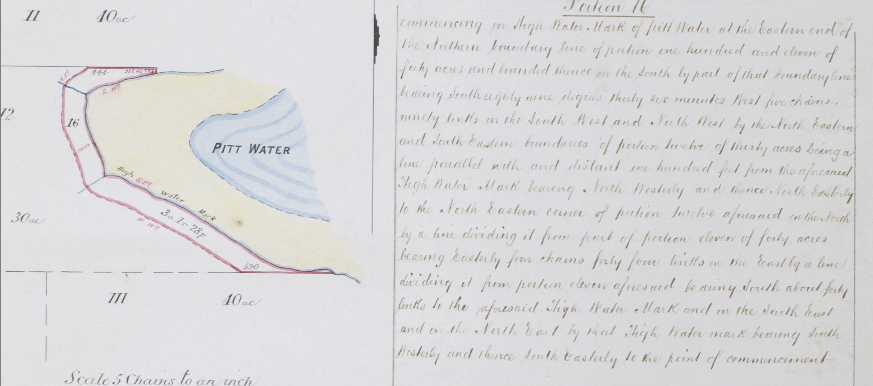 According to Thomas Oliver, the family moved to Pittwater in 1844, before he was one year old. At first, they lived on this grant, and also worked the land at the Basin.