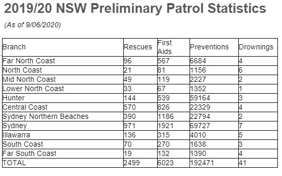 Although the NSW bushfires and the COVID-19 pandemic reduced overall beach attendance during the 2019/20 season by 21 percent, more than 20,000 surf lifesavers across NSW performed 2,499 rescues, 6,023 first-aid treatments and 192,471 preventative actions - an impressive 20 percent increase on the five-year average. This was achieved despite there being fewer patrol days during the season.