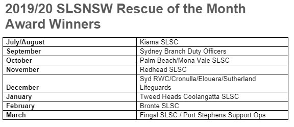 There were numerous standout Rescue of the Month awards presented to lifesavers who went above and beyond to save lives during the 2019/20 season. Four of these awards were for mass rescues which were performed outside patrol hours or at unpatrolled locations.
