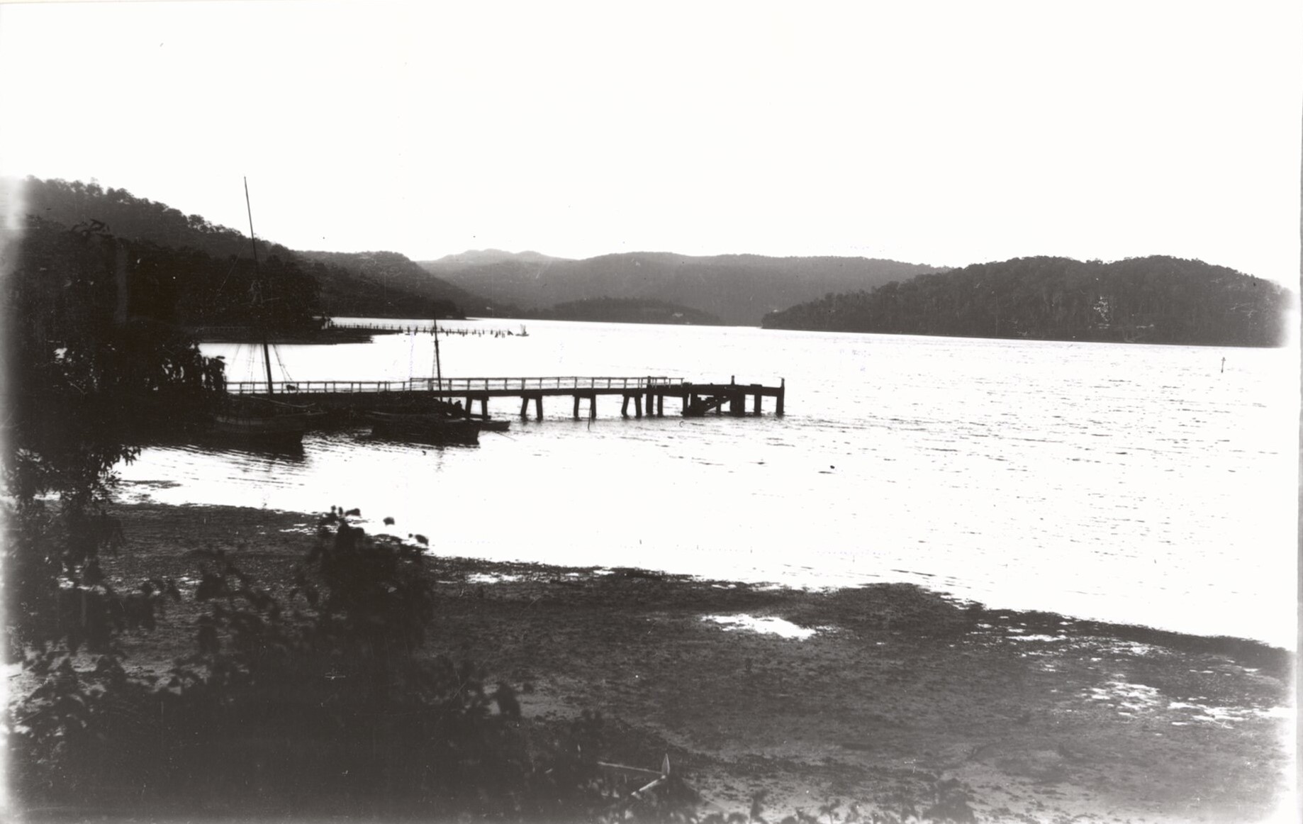 Pittwater wharf at Bayview facing Scotland Island (at Right), 1900, and looking towards Church Point - from NSW State Records and Archives, Item: FL11281545: