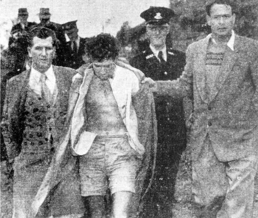 "Throw up your hands and submit quietly or we will shoot," Constable Curtayne ordered. Rising slowly to his feet and with both hands' in the air, Brown said: "I've had it. Don't shoot. You're too good. I'm all in. Give me a break. I've thrown my gun away. I'll go quietly." Brown's capture was the climax to the biggest search on land, sea, and air in the history of New South Wales. He had been at liberty for 62½ hours.