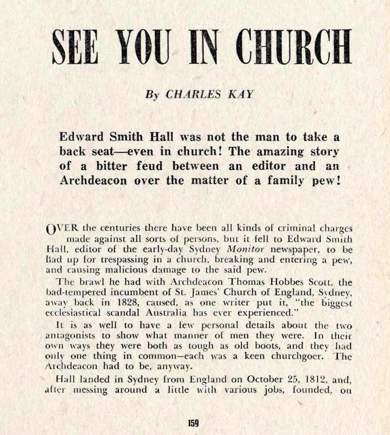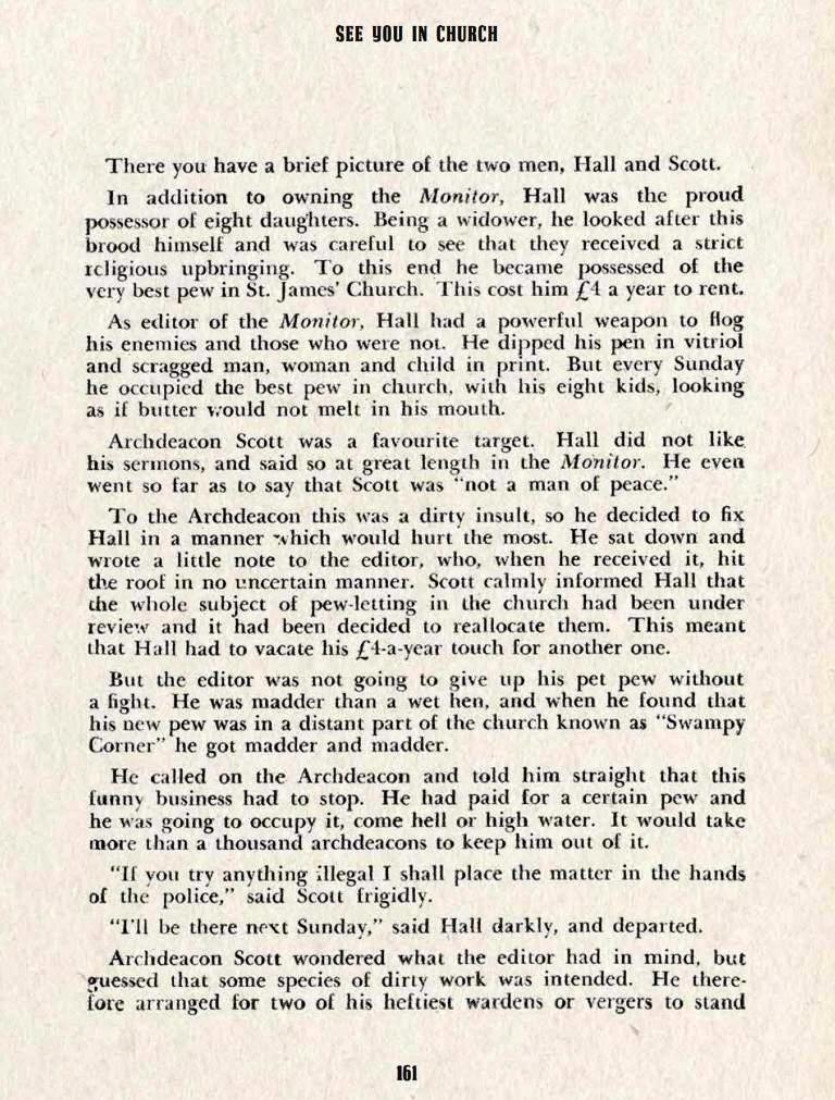 For example, we were able to find out more about the 'word skirmish' referred to the above item, wonderfully reproduced to read as a 'True Tale' in 'See You in Church':