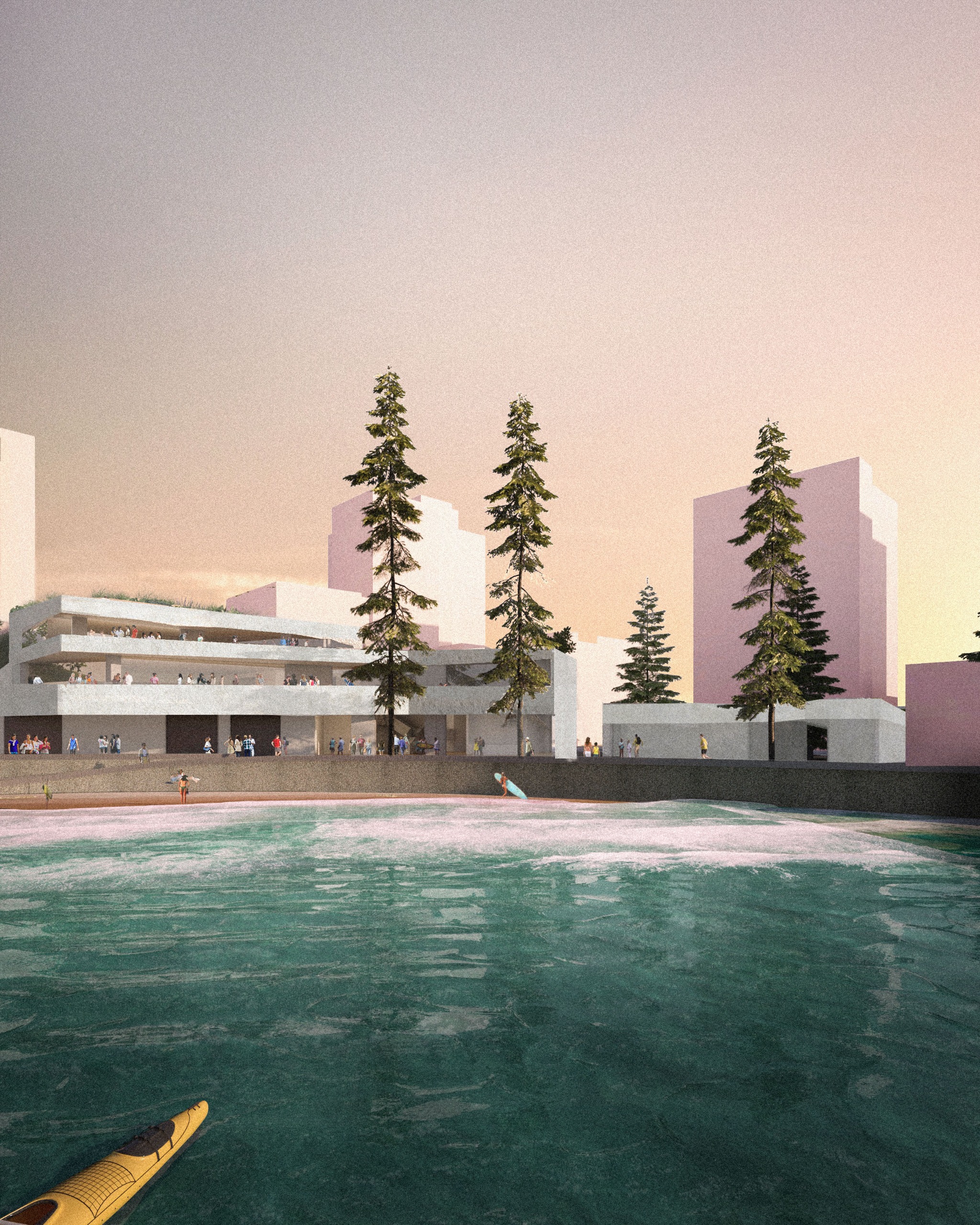 It also includes a shop for club merchandise, office space, storage spaces for surf craft and rescue equipment, club amenities, club training rooms, a space for nippers and a club gym.