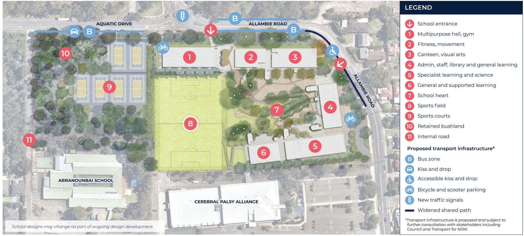 Architects considered the overall layout and look and feel of the school, including the character and how it responds to the local surrounding area, taking into consideration environmental, access, transport and other planning requirements. It is important to note that the concept design is not the final design. It will be subject to change until the design process is completed, should development consent be granted for the project.