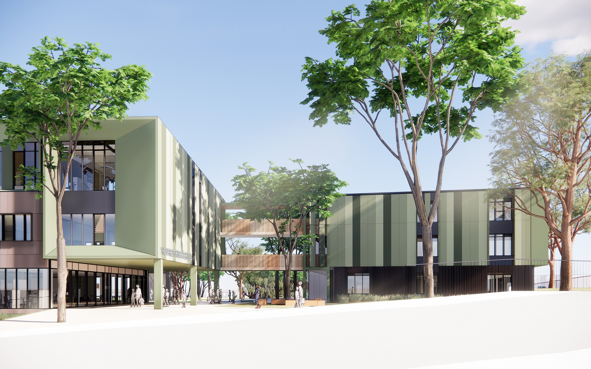 Artists' impression image: View of the main entrance off Allambie Road (looking west). NSW Department of Education - School Infrastructure image