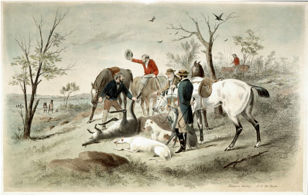 S.T. Gill, Kangaroo Hunting, The Death, from his Australian Sketchbook (1865). National Library of Australia