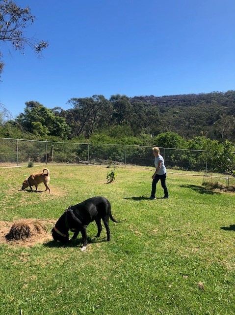 Two of the current residents of the shelter Olympia (a 5 year old female Dogue de Bordeaux) and Oscar (a 4 year old male Labrador x Wolfhound), were the first to enter the park after the official opening with Monika and kennel hands and they demonstrated why this park is so special. Olympia took the time to sniff and explore bushes whilst Oscar delighted in running around and chasing any ball, toy or Frisbee thrown for him by the volunteers.