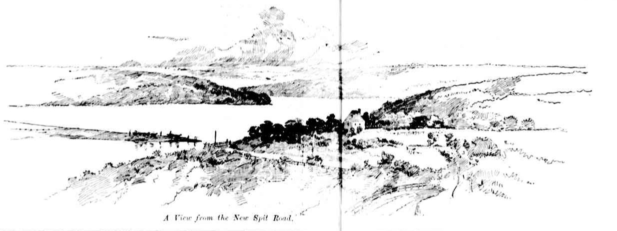 The " Spit," as the long narrow neck of sand projecting from the western side is called, is the natural crossing-place for those wishing to reach Manly Beach, Narrabeen, or Pitt Water, from the North Shore.