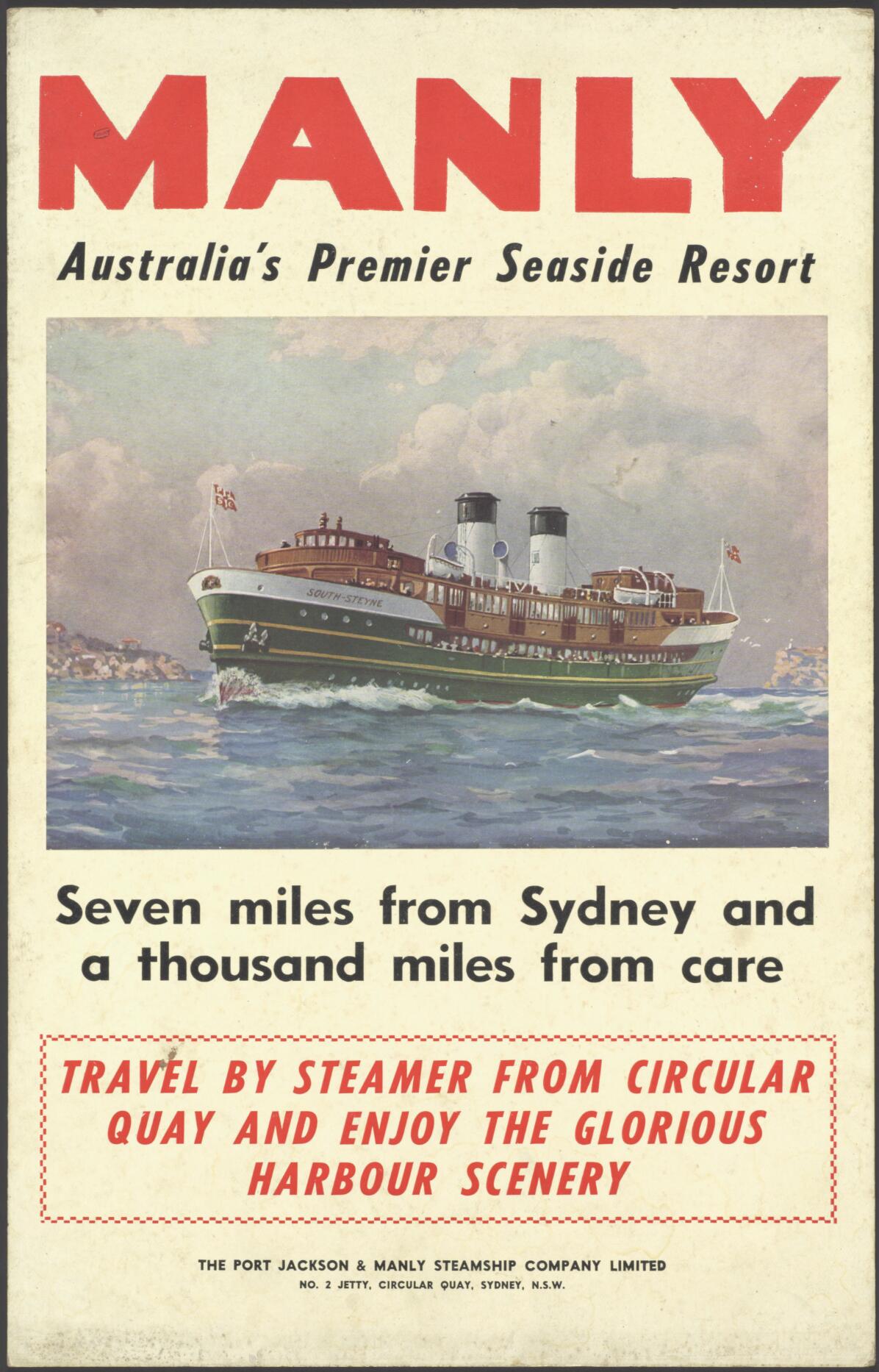 There remains now only Manly to consider within the scope of this paper. Like Watson’s Bay, Manly began its communications with ships' boats dating from the time of Captain Phillip, but as Manly itself and the intervening country was not suitable arable land, the place was only used as a “port” by the few who went to Pittwater by other than the road or by sea via Broken Bay. The ferry established by Kerrins in 1830, already noted, would seem to have been the first regular service, and, while the ungodly may have visited Manly on the Sunday and holiday excursions by the various steamers engaged in that trade, it would appear that the village did not get regular trips even on Sundays until the ’fifties, when the Newcastle boats made a trip there much as they do now on Saturdays to the Hawkesbury. Later in the decade other boats entered into the running, making early and late trips.