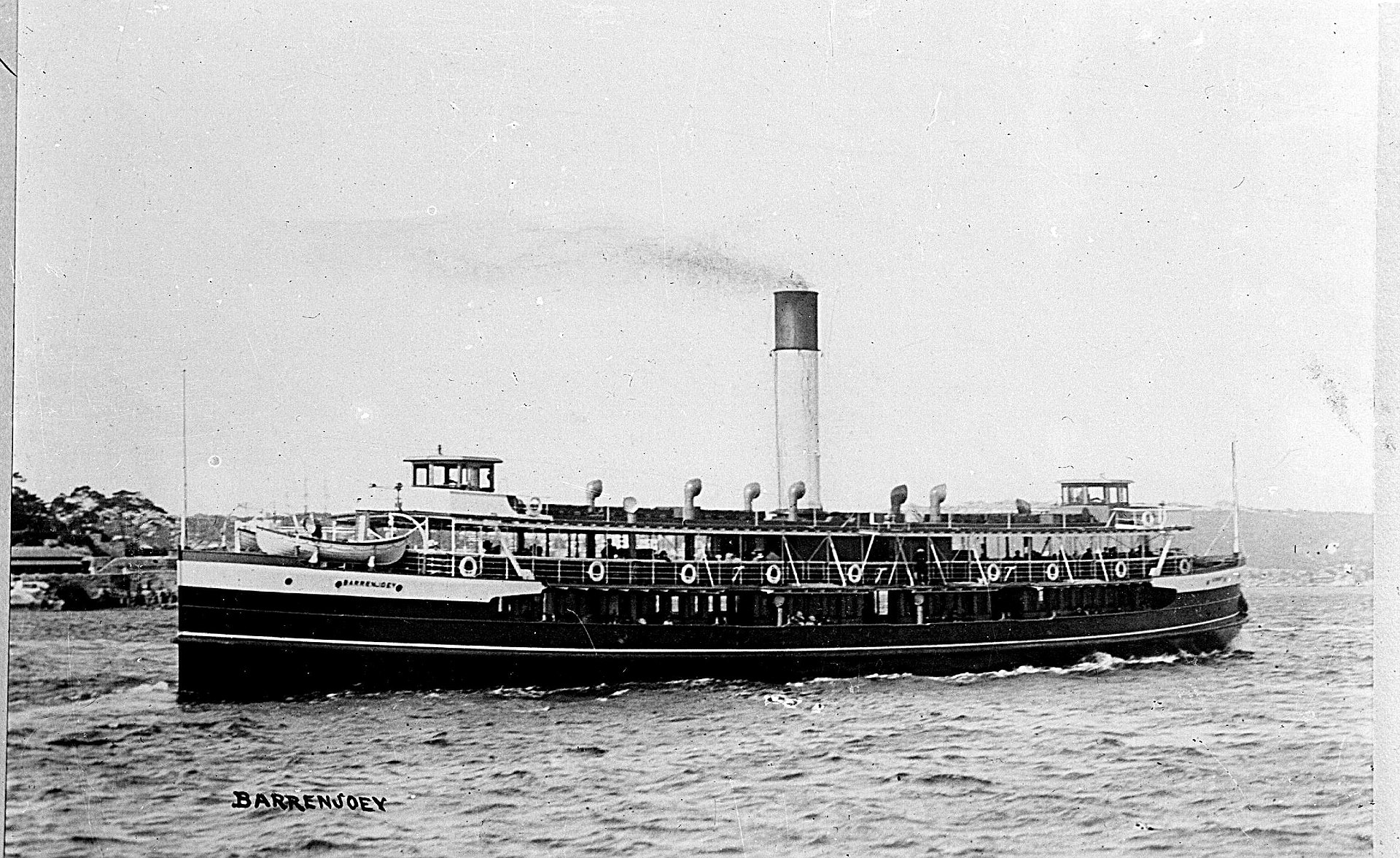 With the introduction of the larger Bingarra class, she was modified in 1911 for use as a cargo ferry with derricks fitted at either end. The first Narrabeen was hulked about 1917 and her fate after this is unknown, although she does turn up as being in Berrys' Bay, according to one report, as a hulk in 1927.