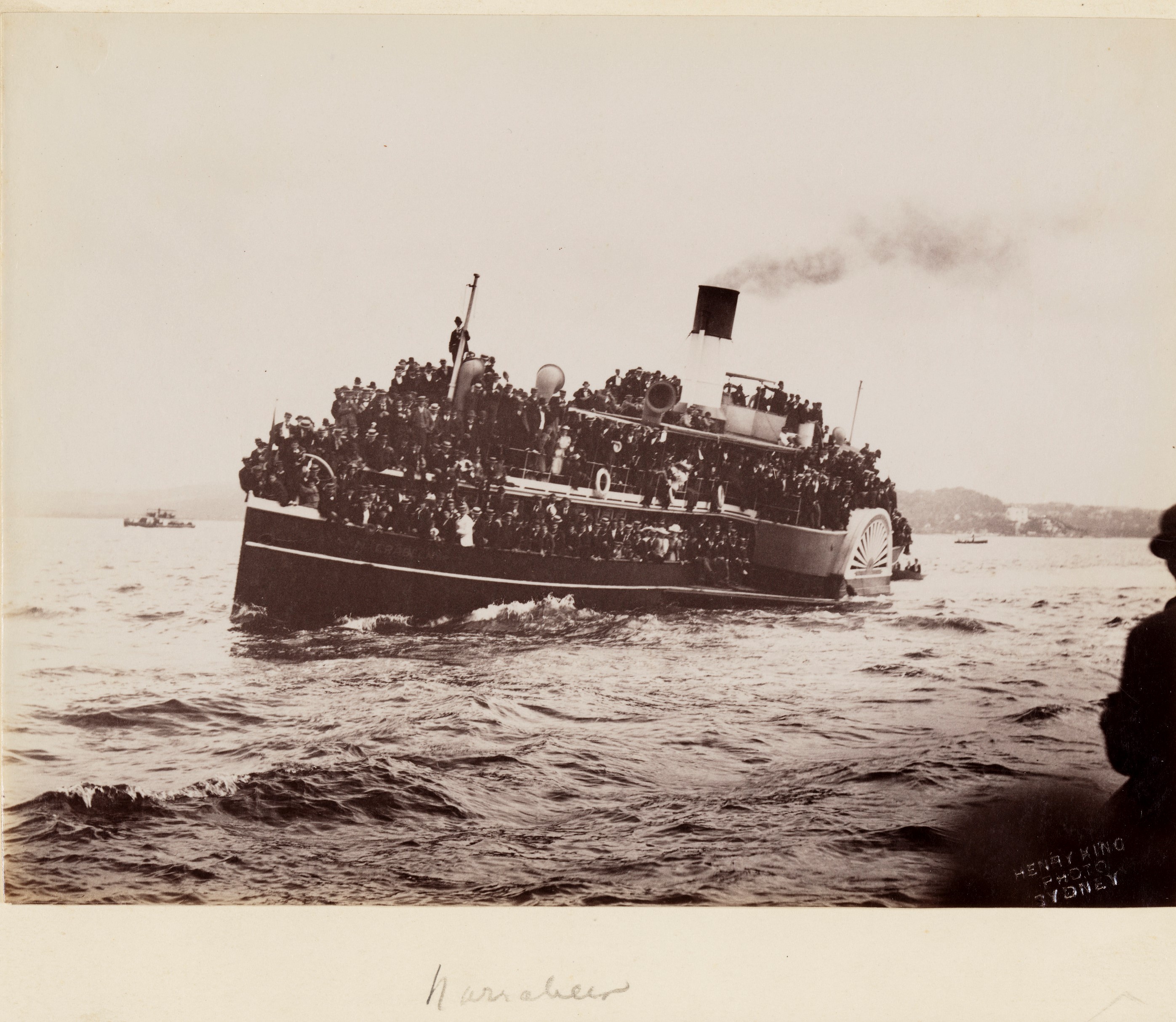 Passengers on-board the ferry Narrabeen, Australia, 1 - showing glassed-in wheelhouse.(1900). Passengers on-board the ferry Narrabeen, Australia, 1 Retrieved from http://nla.gov.au/nla.obj-137394340