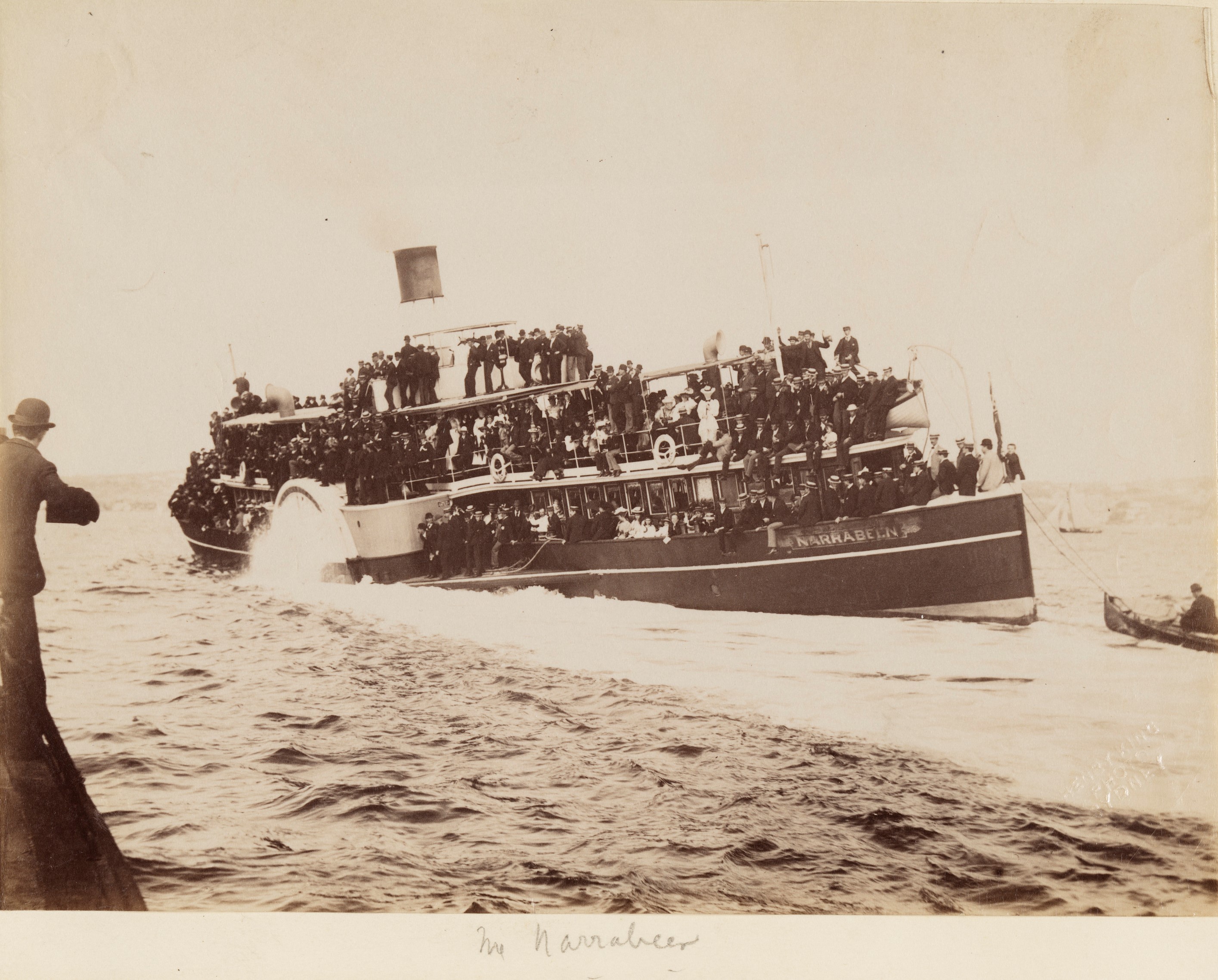 The first ferry named 'Narrabeen' was a paddle steamer that was built in 1886 by Mort's Dock and Engineering for the Port Jackson Steamship Company, she was an iron-hulled vessel, Narrabeen was 48.8 metres (160 ft 1 in) long, 239 tons (211 tons from 1911) and could carry up to 850 passengers, although, when launched, reports stated her capacity was 700 - her 'trail' took place on a Tuesday with a run from Morts' down to Manly: