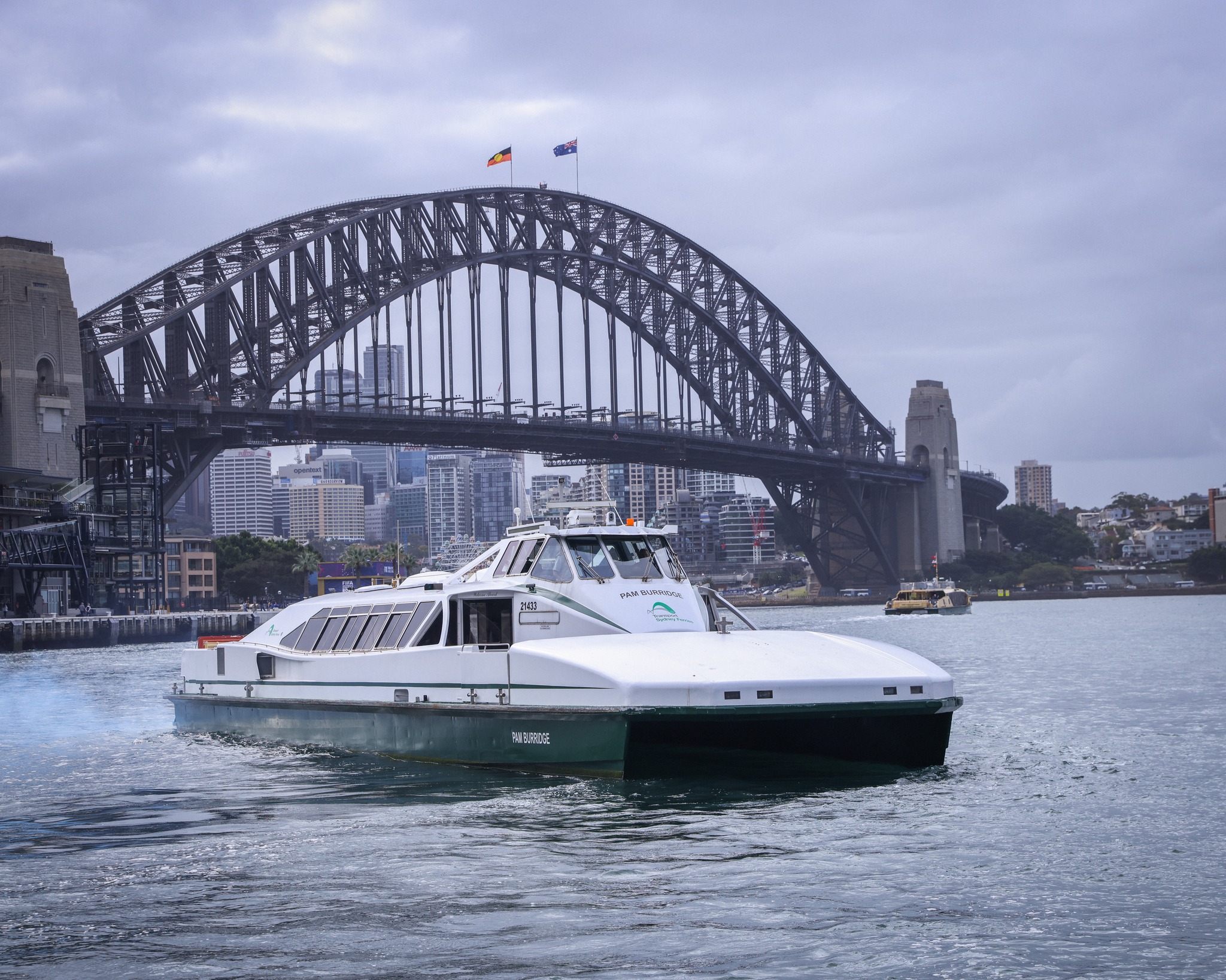 Photo: The Pam Burridge is a Sydney HarbourCat-class catamaran operated by Harbour City Ferries on the Parramatta River and Inner-harbour. Commissioned in 1998. Named after world champion Australian surfer Pam Burridge, a former Newport resident who now lives on the South Coast of NSW. Image: NSW Government