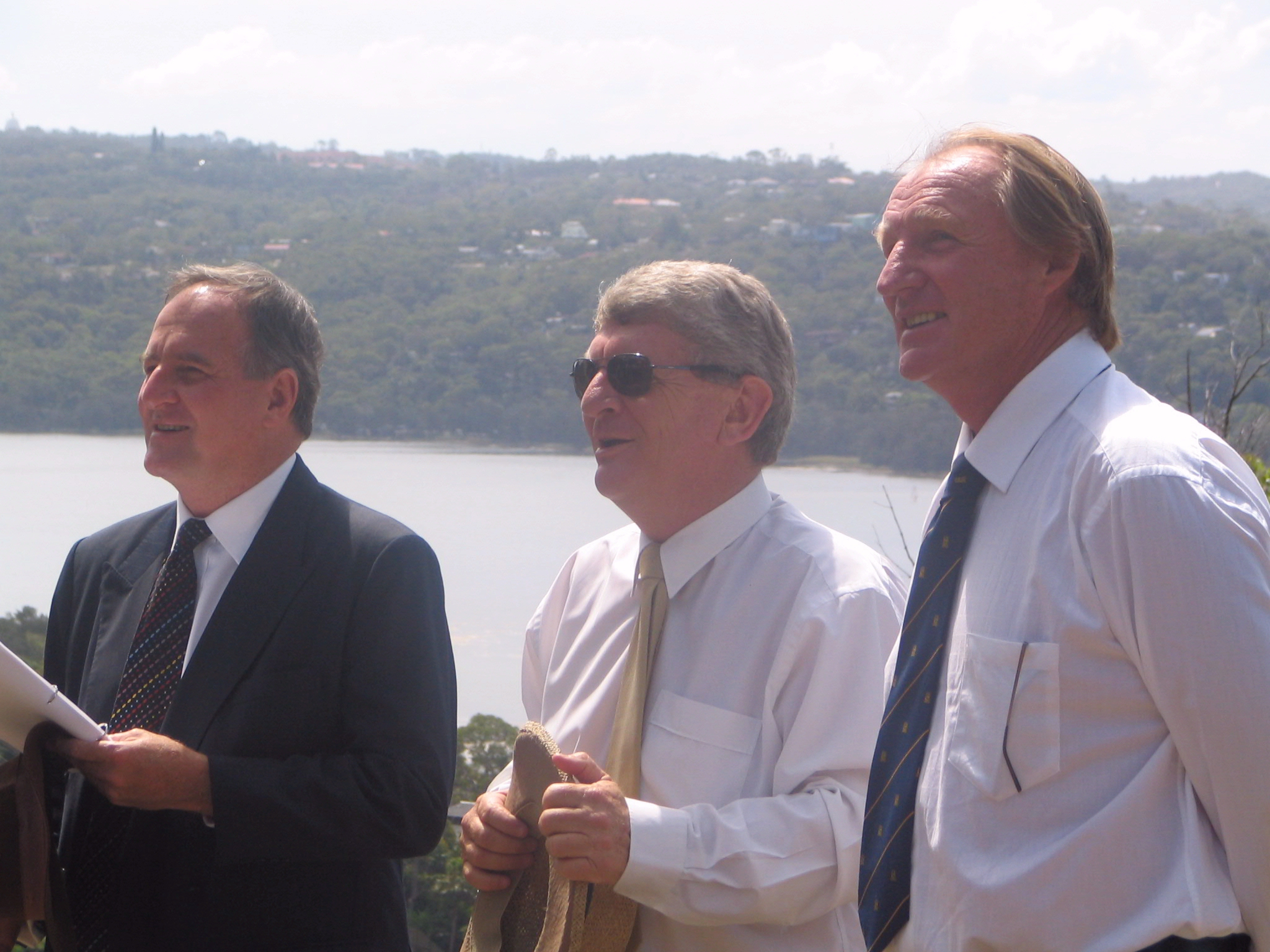 The Hon Bob Debus with Administrator Dick Persson, and the Mayor of Pittwater, Alex McTaggart. Photo: P Bennet