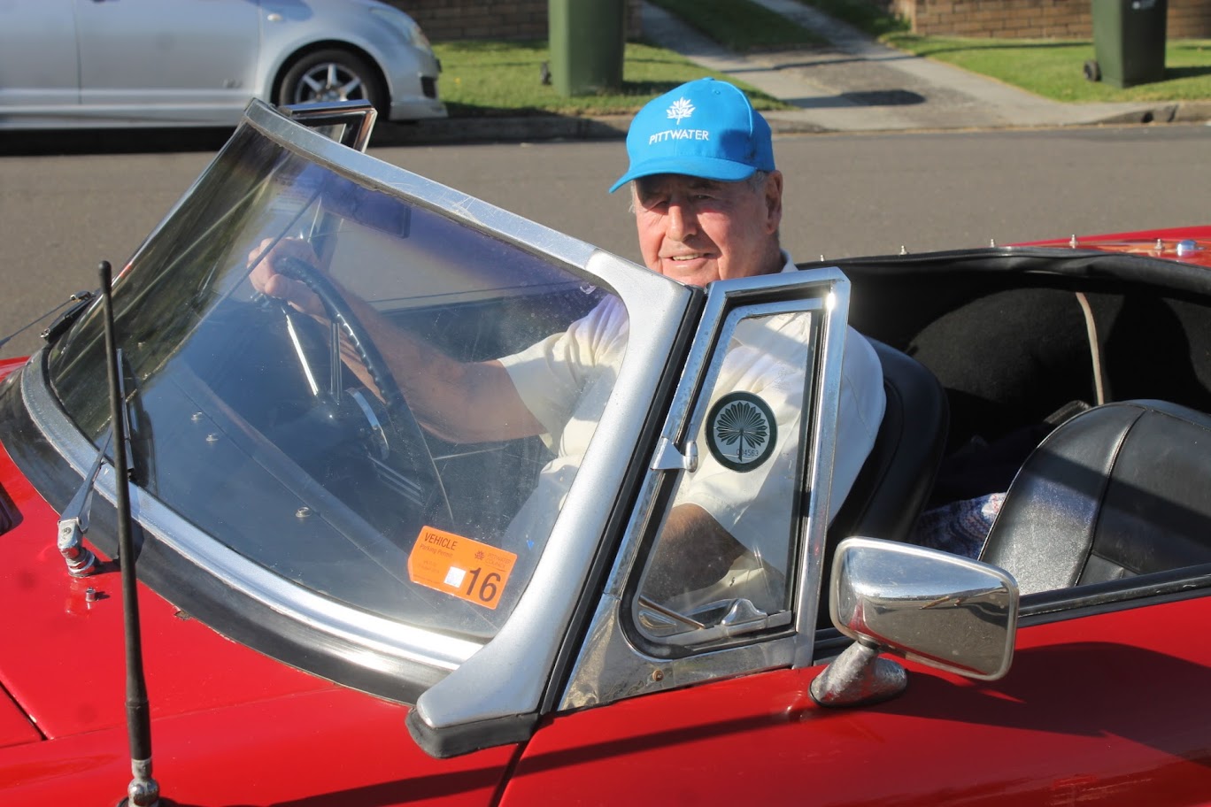 former Deputy Mayor of Pittwater Council Bob Grace in his famous red MG. Photo: AJG