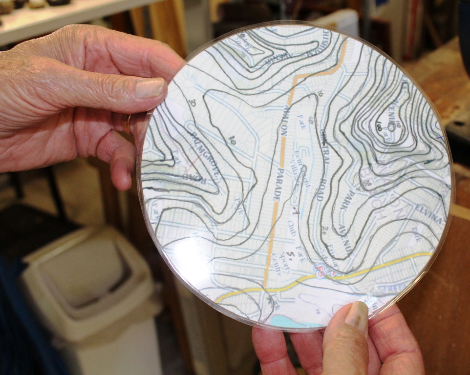 Geoff Searl putting the final touches to his Avalon Beach 1: 30,000 - the piece shows the contours of the land and hills around Avalon Beach