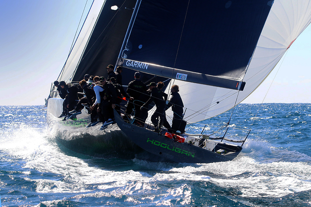Blackmore’s Hooligan didn’t have its own way upwind but revelled in the runs thanks to sharp crew-work, clocking up to 17 knots at times.