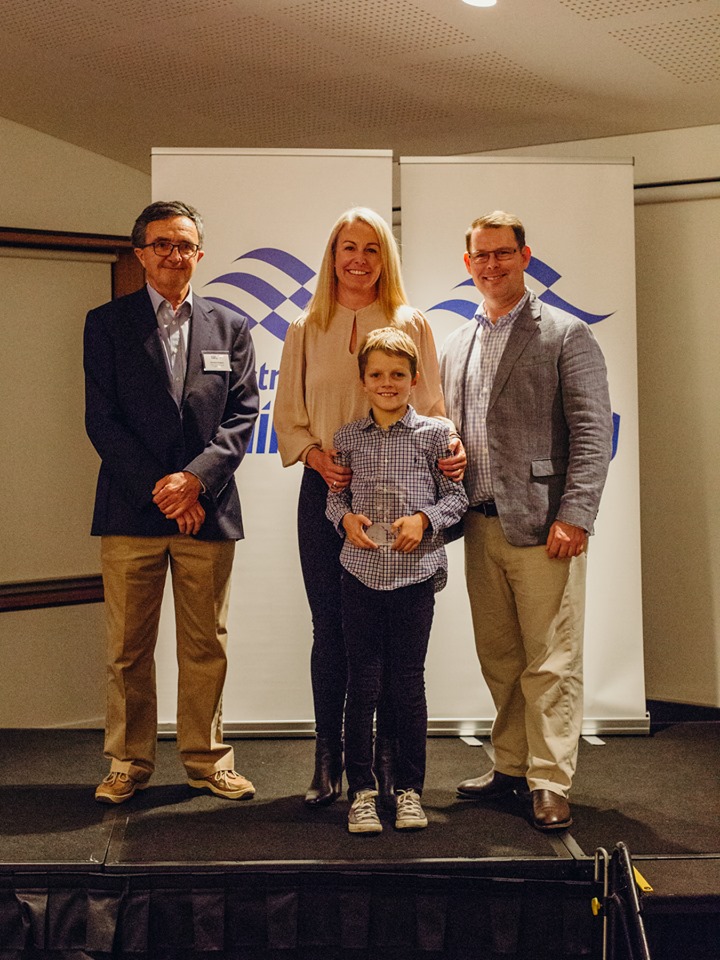 Daniel Links and his parents and Vice-Commodore of the Middle Harbour Yacht Club Alister Copley