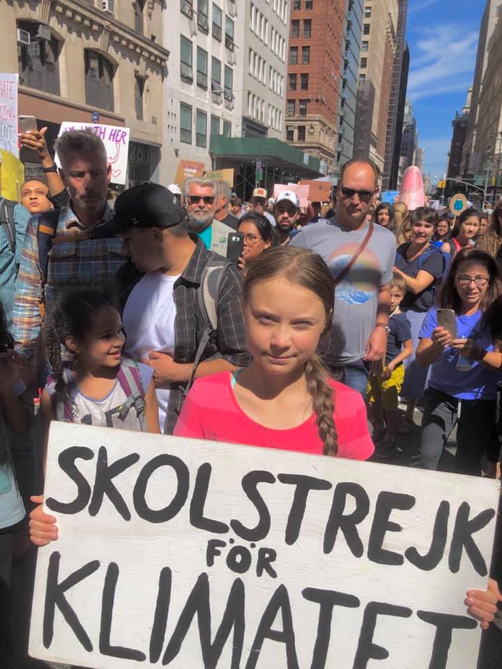 Greta Thunberg: School strike. Week 57. New York City. photo from her page, Facebook post