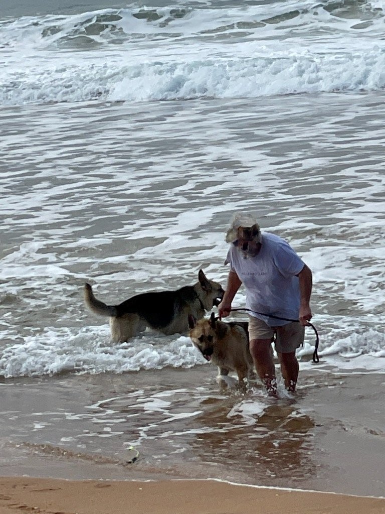 the dogs that attacked man on Narrabeen beach: this photo was taken by a bystander - the man had put one of the dogs back on a lead