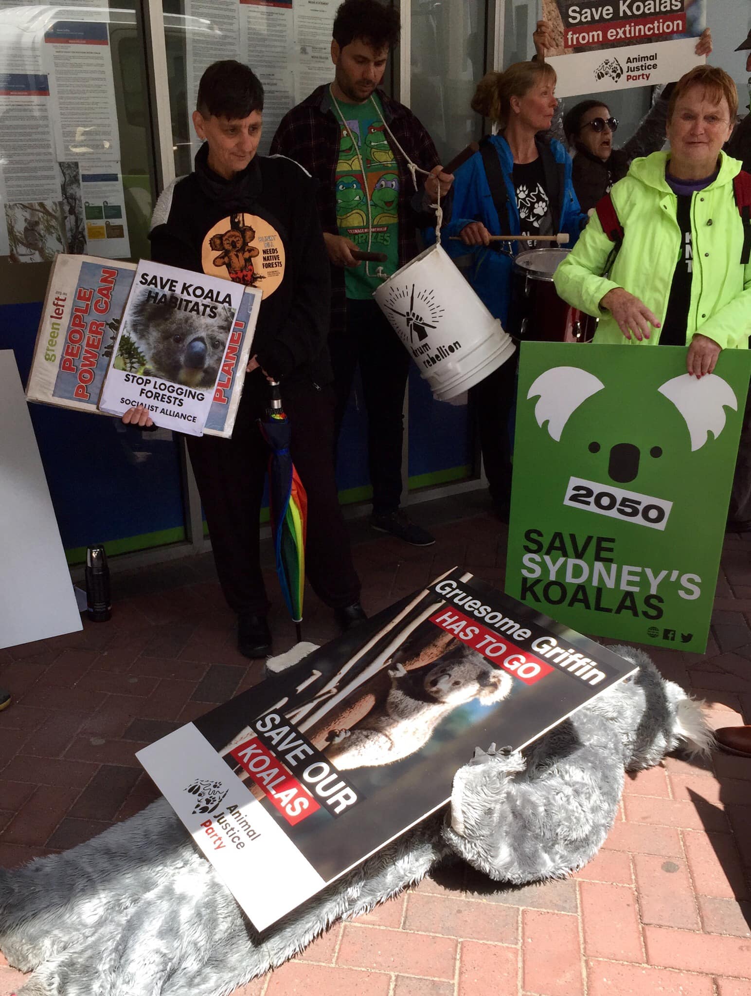Residents fighting for the survival of koalas braved wet weather on Friday September 30th to attend a Manly rally calling on NSW Environment Minister James Griffin to save the endangered species from extinction.