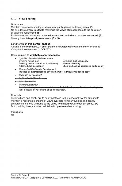 The Council's recent Conservation Review ignored the Pittwater Council's 60/40 ruling for Environmentally sensitive blocks in Pittwater, and 50/50 for all others, as in the Pittwater 21 Development Control Plan (DCP). Planners told councillors they estimate that in the former Pittwater LGA, 3,613 properties will move from a Conservation zone to an R (residential) zone, and 1,328 from an R zone to a C zone, resulting in an overall loss of 2,285 properties from C zones.