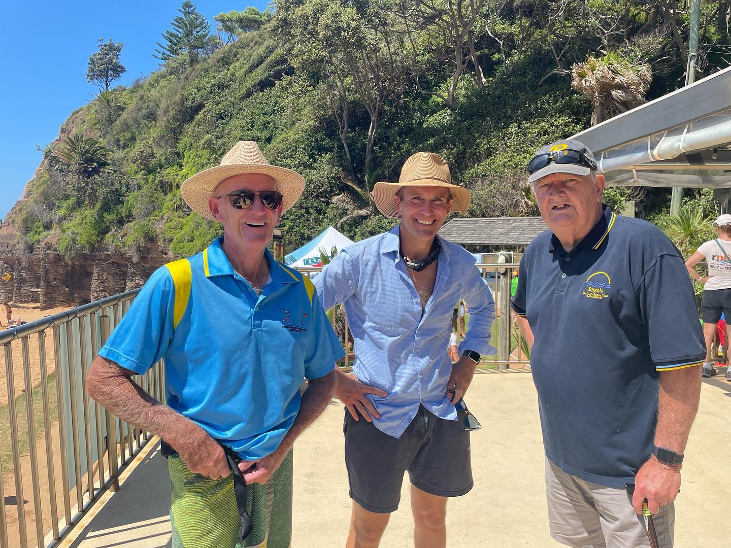 Pittwater MP Rob Stokes with Bilgola Life Members Graham Foranand Bob Machar. Photo Bilgola SLSC