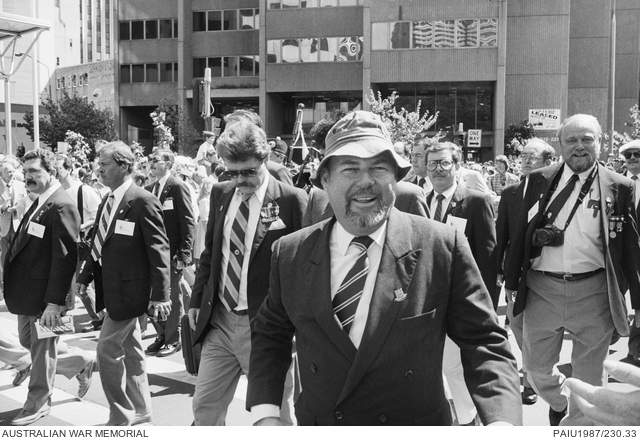 On 3 October 1987, after a Dawn Service held at the Cenotaph in Martin Place, 22,000 Vietnam veterans marched through the streets of Sydney in the parade. The Veterans mustered in the Domain before marching through the city, passing enthusiastic crowds who packed the streets along the route, in some places ten deep.