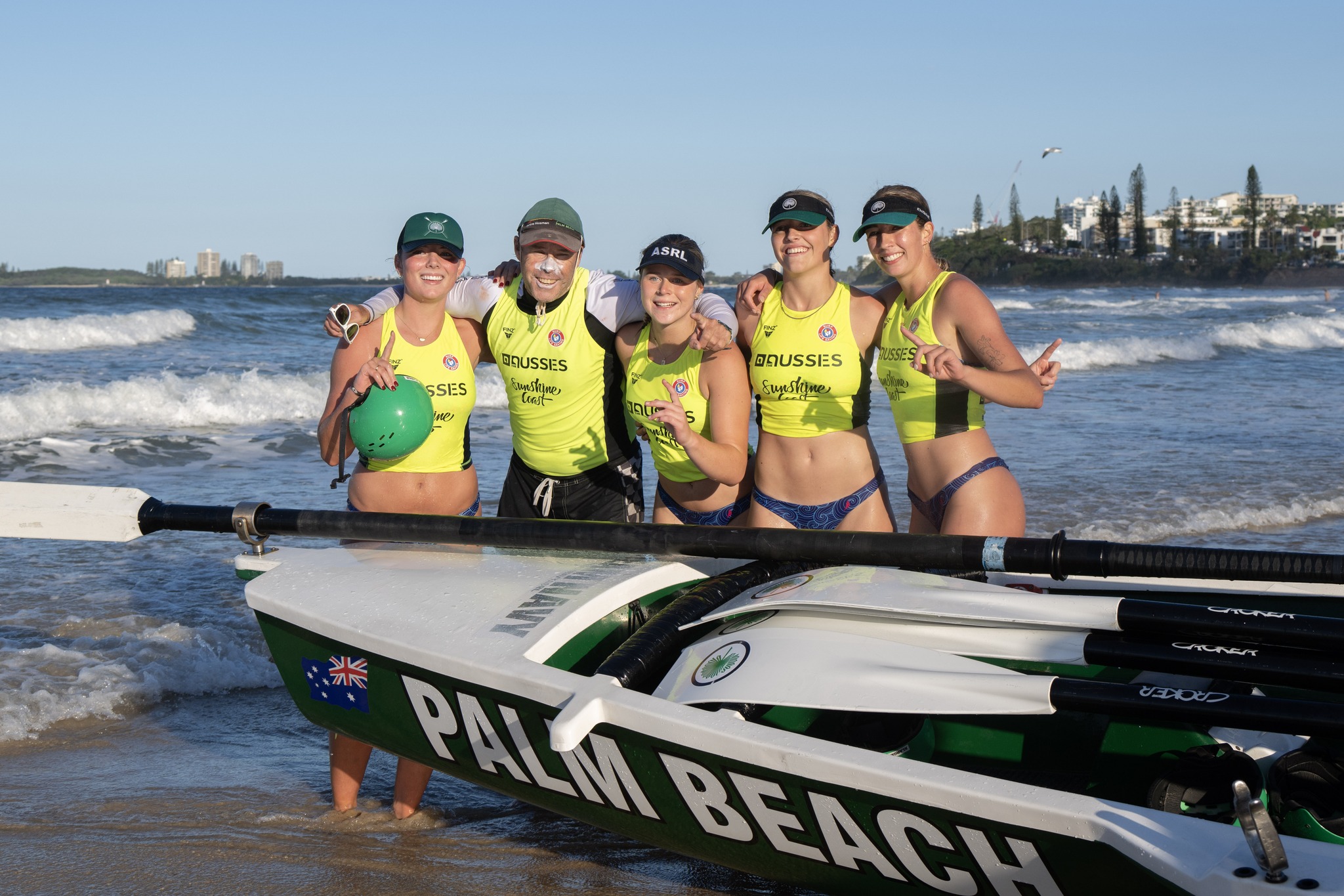 Palm Beach SLSC's Puddles crew of Chloe Driver, Chloe Brunker, Zoe Elliot and Madeleine Julliard with Boat Captain Peter Spence as sweep won gold, completing a whole Season of back to back wins. Surely the success story of the Surf Boat Season for local crews.