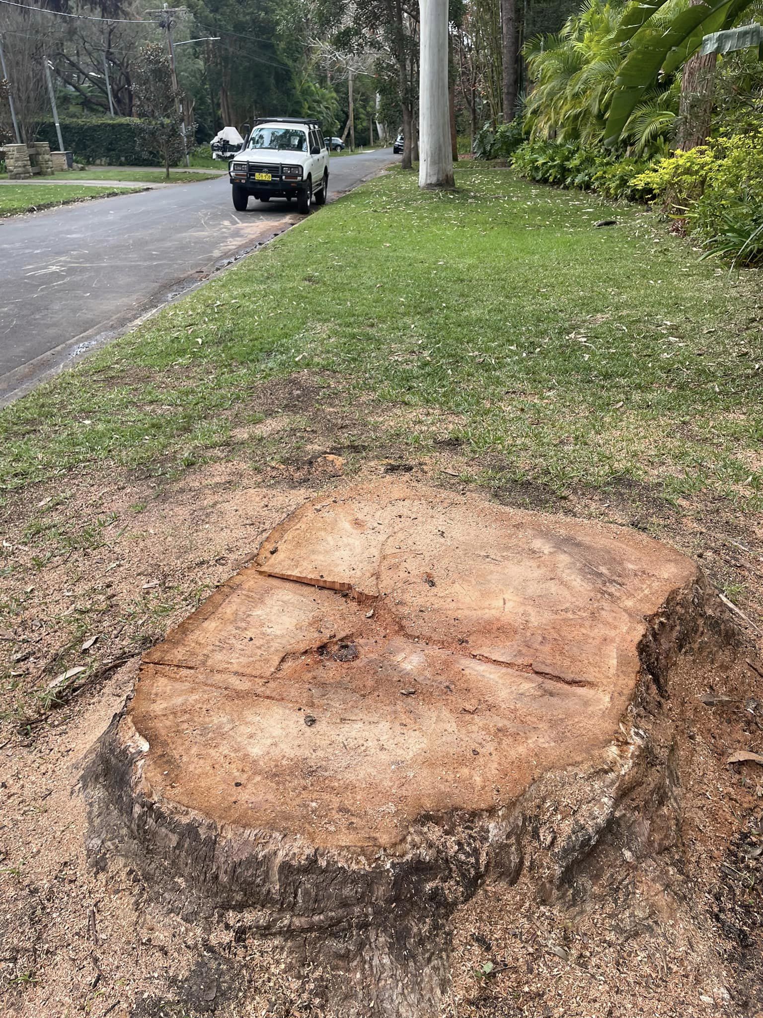 Tree stump of the Ruskin Rowe tree destroyed by Northern Beaches Council