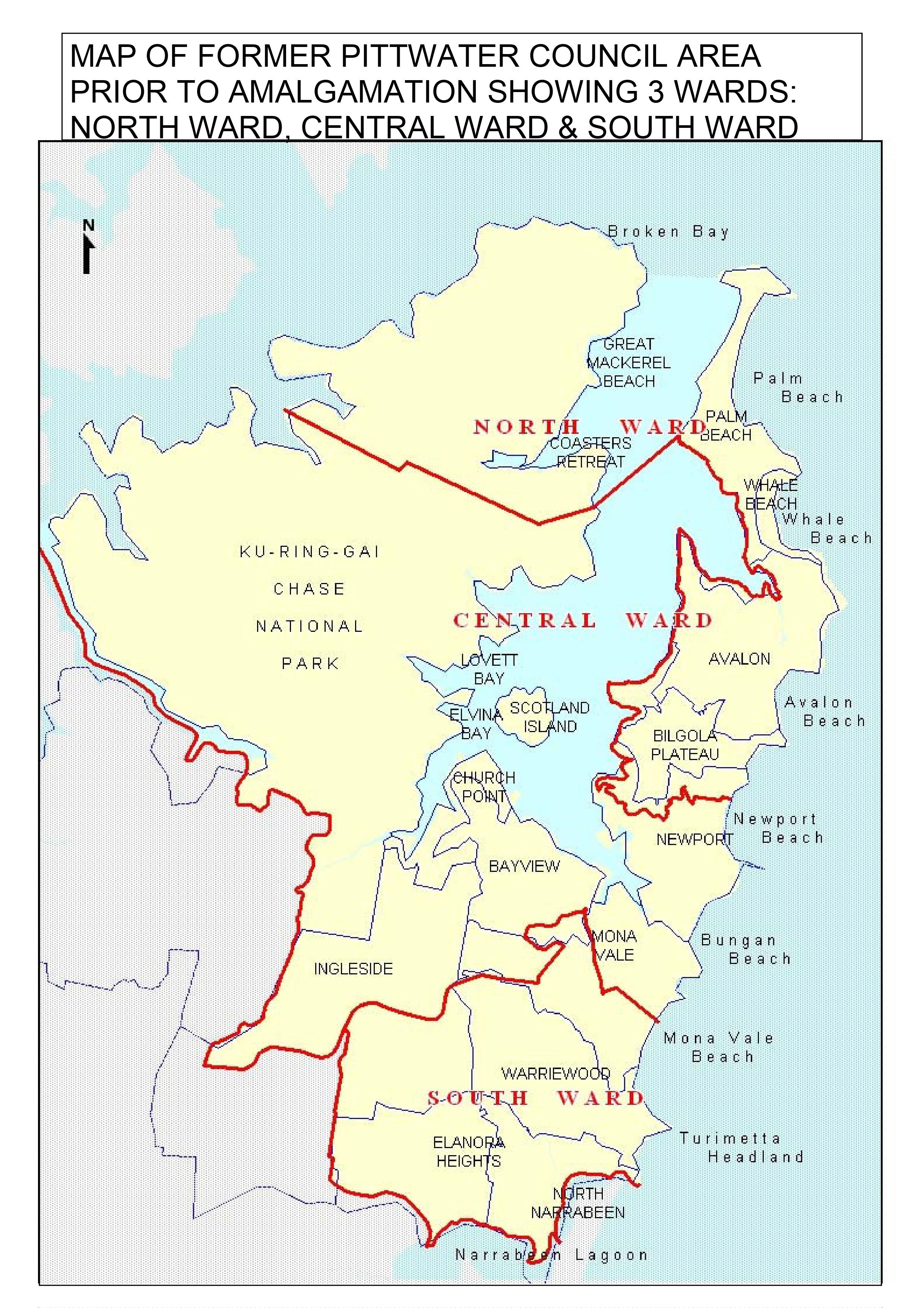 the newly constituted Pittwater Local Government Area be divided into three wards named: North Ward, Central Ward and South Ward and that three Councillors be elected from each ward with the Councillors electing the Mayor of the new Pittwater Council.