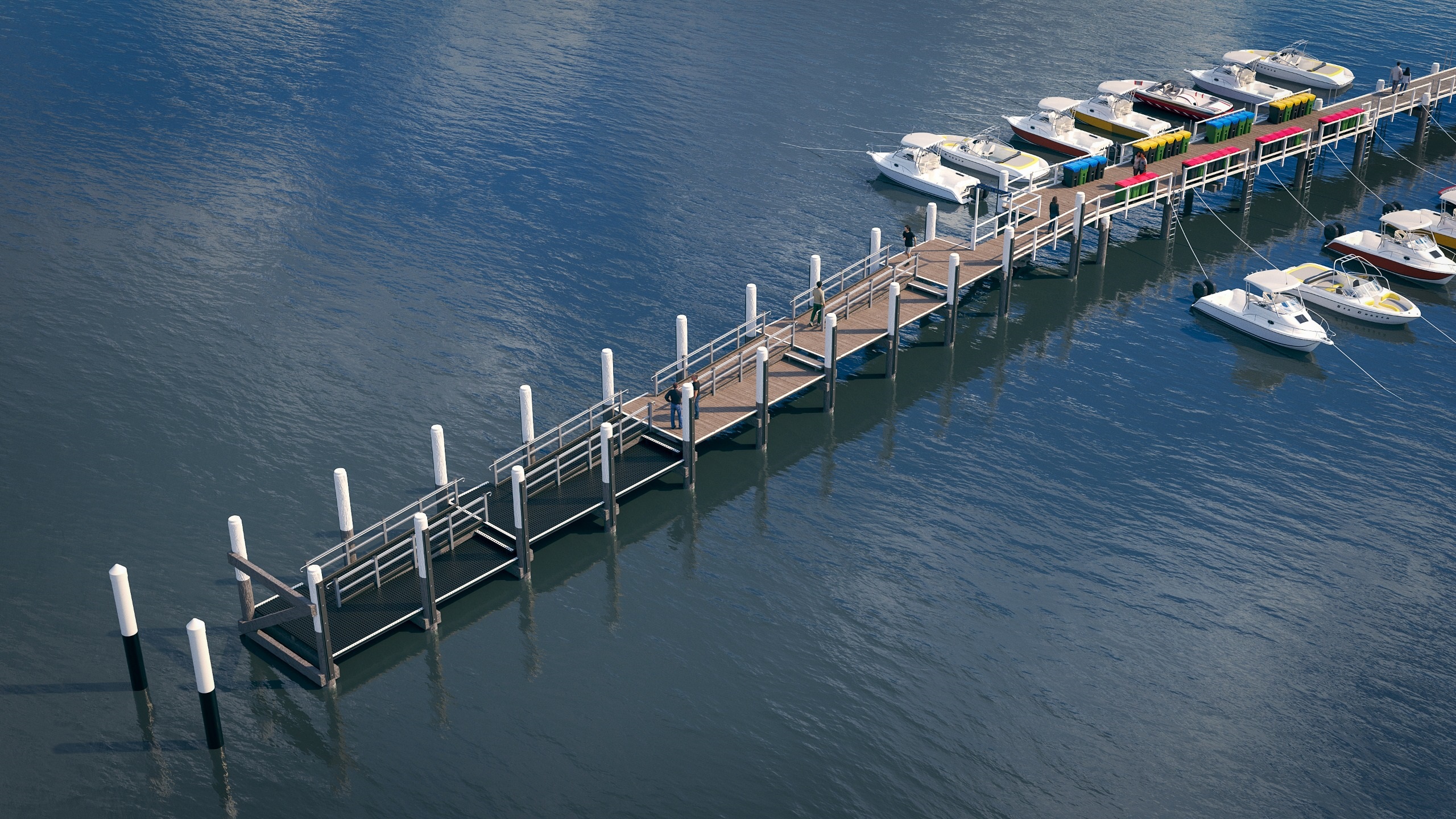 - Widened tidal steps, an external ladder and tie up location on the north side and widening of the wharf deck.
