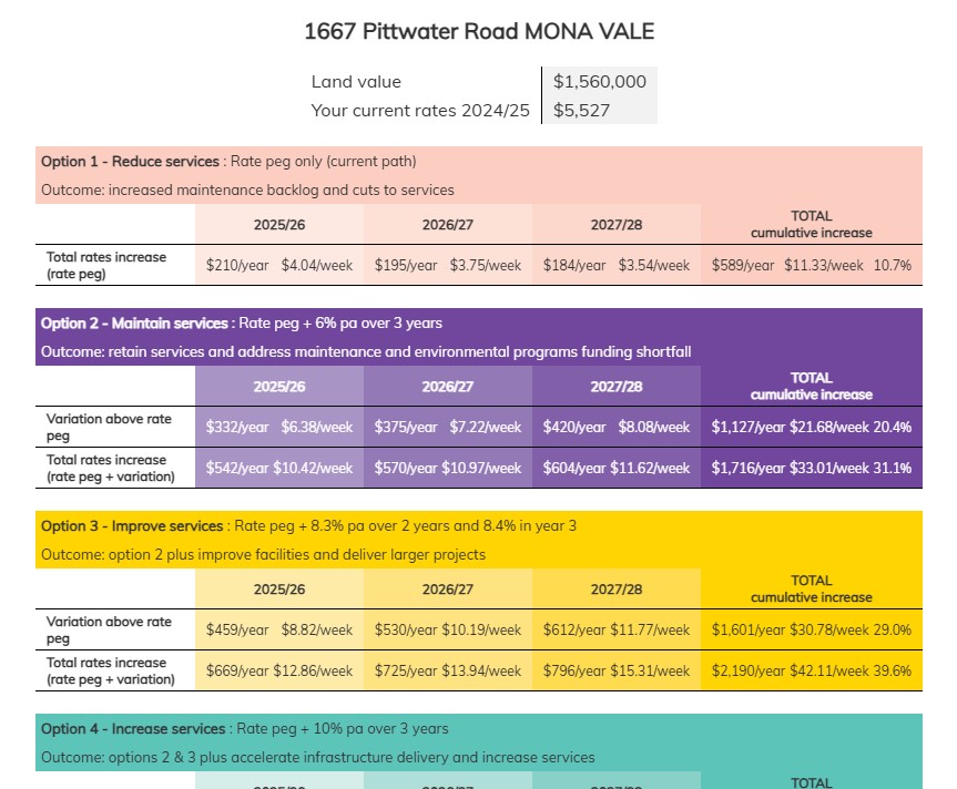 The Northern Beaches Council resolved to apply to the Independent Pricing and Regulatory Tribunal (IPART) for a Special Variation of rates based on its formulated Option 3 ‘Improve Services’ at an Extraordinary Council Meeting held on January 28 2025.