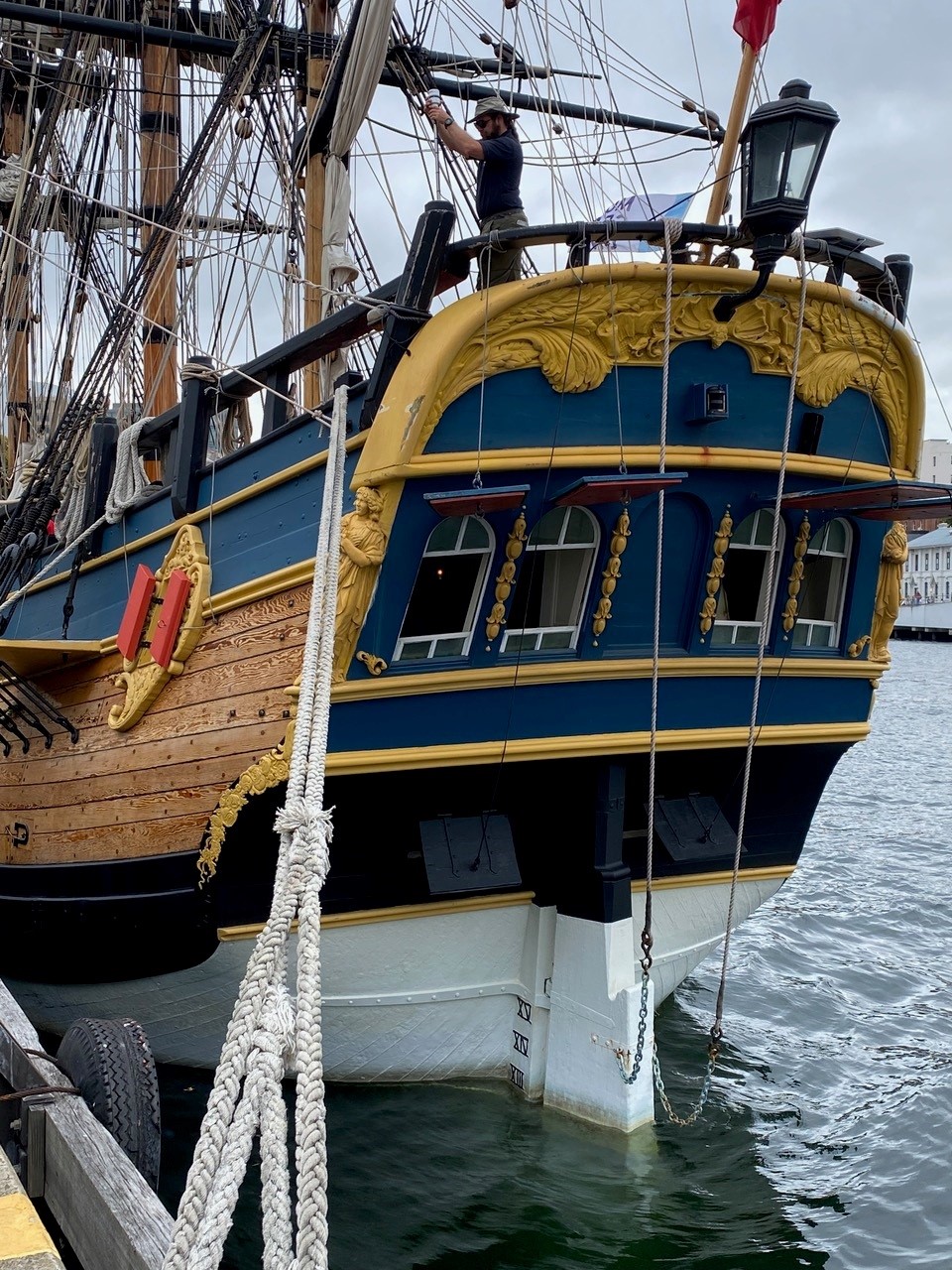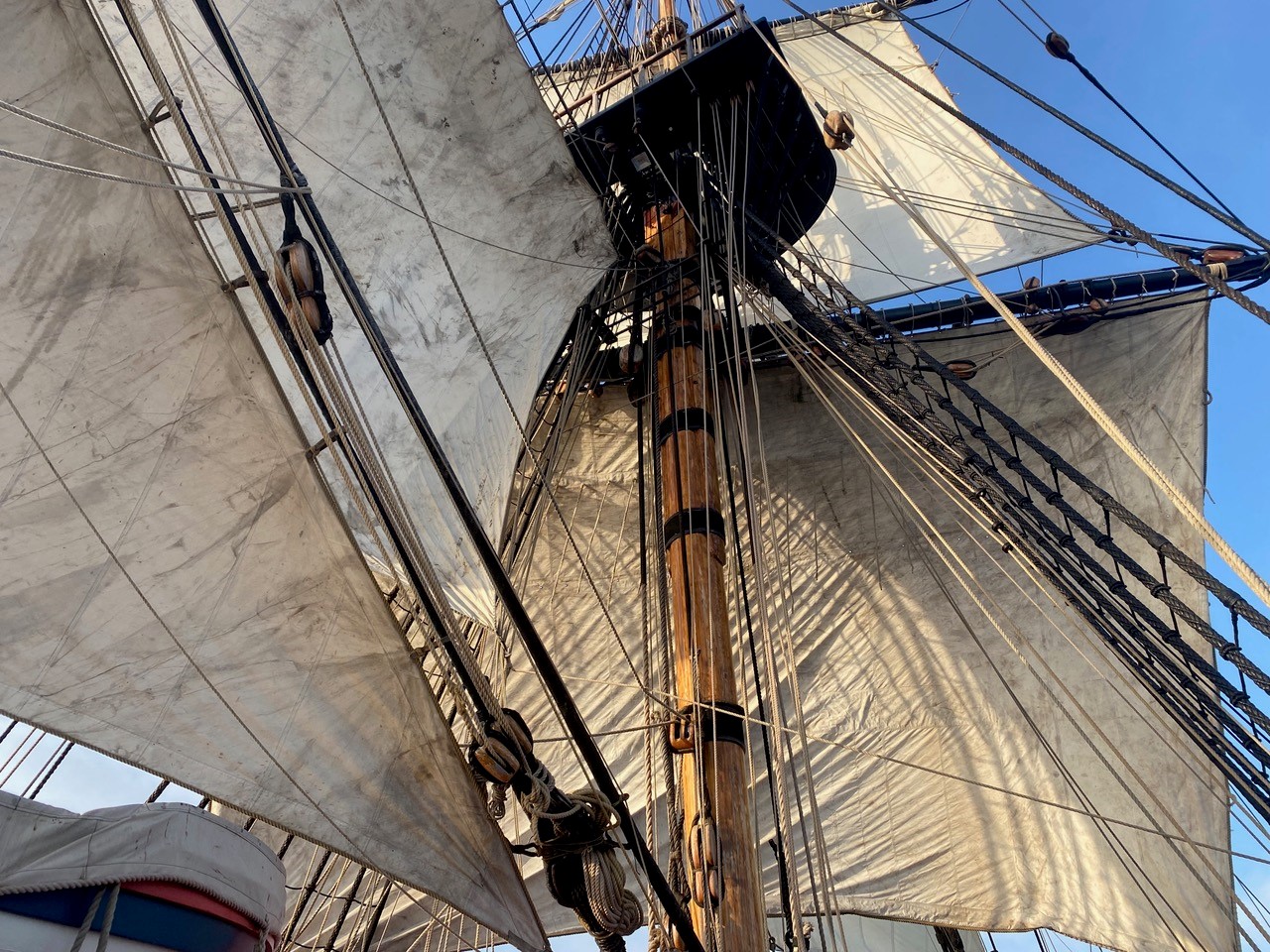 Our ‘flying nun’ was again working hard to ventilate the 18th century deck below. This is simply a canvas tube positioned on the upper deck with ‘wings’ at the opening which is used to catch some breeze which then sends the cool breeze to the deck below.